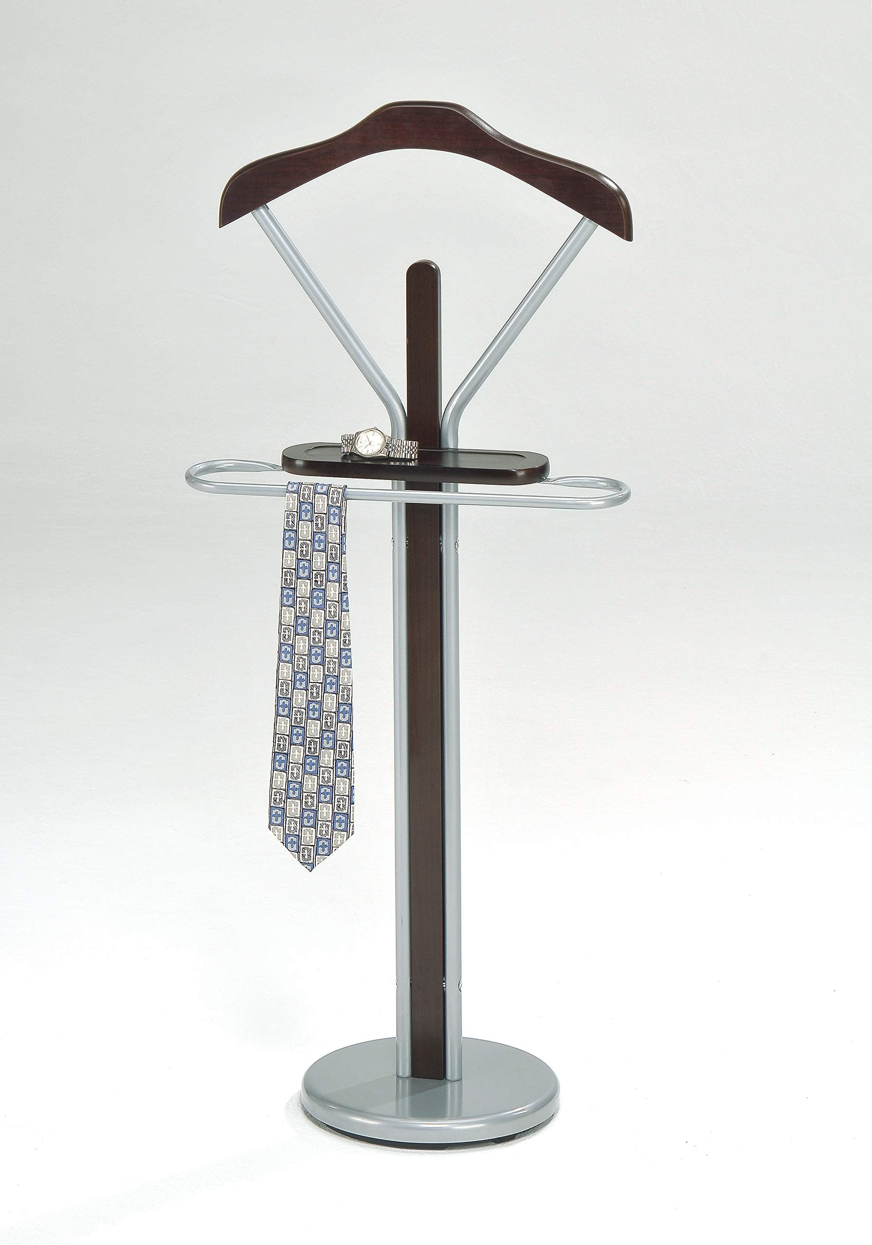 - KB Designs - Suit & Tie Freestanding Valet Stand Clothing Organizer Rack, Silver/Walnut