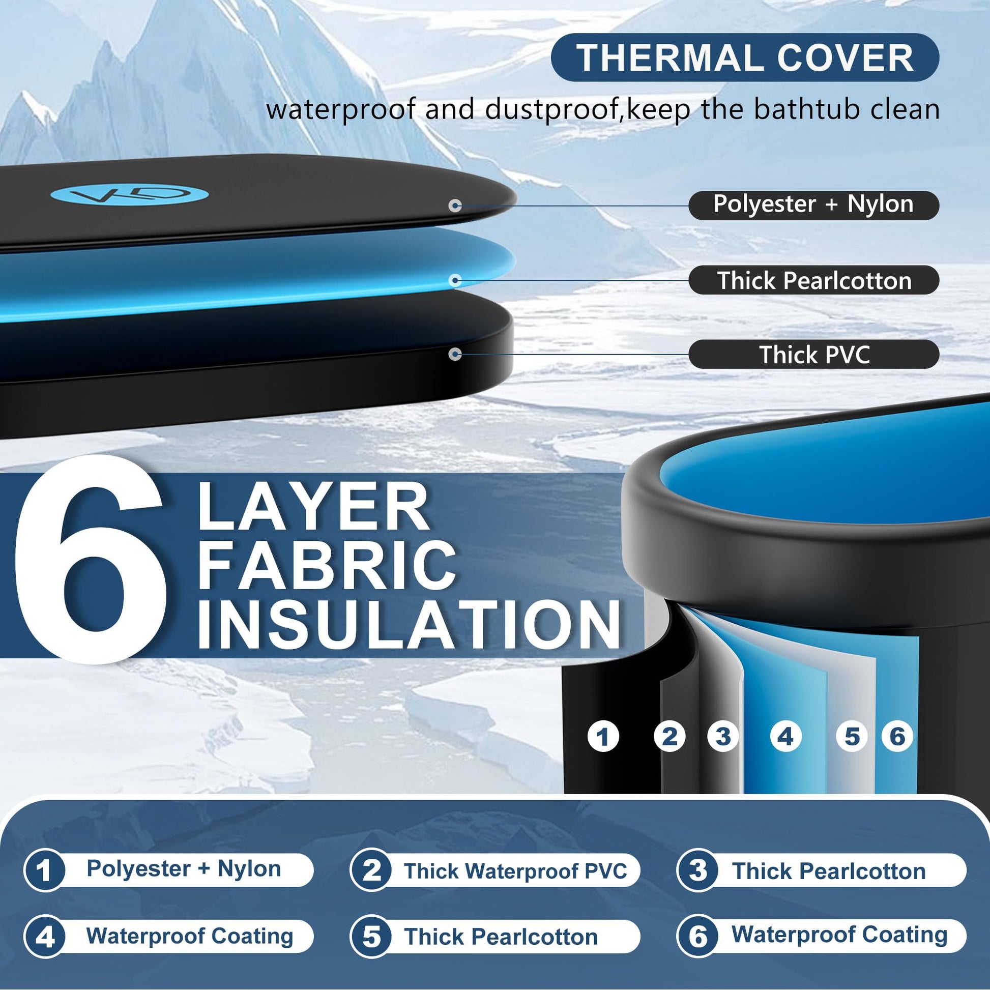 - 6-Layer Insulation Technology- Holds Cold/Hot Temperatures 2X Longer: Outperform basic ice baths with our 6-layer insulation that locks in temperatures from -86°F to 140°F—ideal for cryotherapy, hot therapy, or contrast baths. While competitors struggle with ice melt within 1-2 hours, our bathtub maintains 24+ hours of consistent cold (depending on the ambient temperature and the amount of ice used) and resists cracks/tears. Includes free repair stickers for long-term durability.