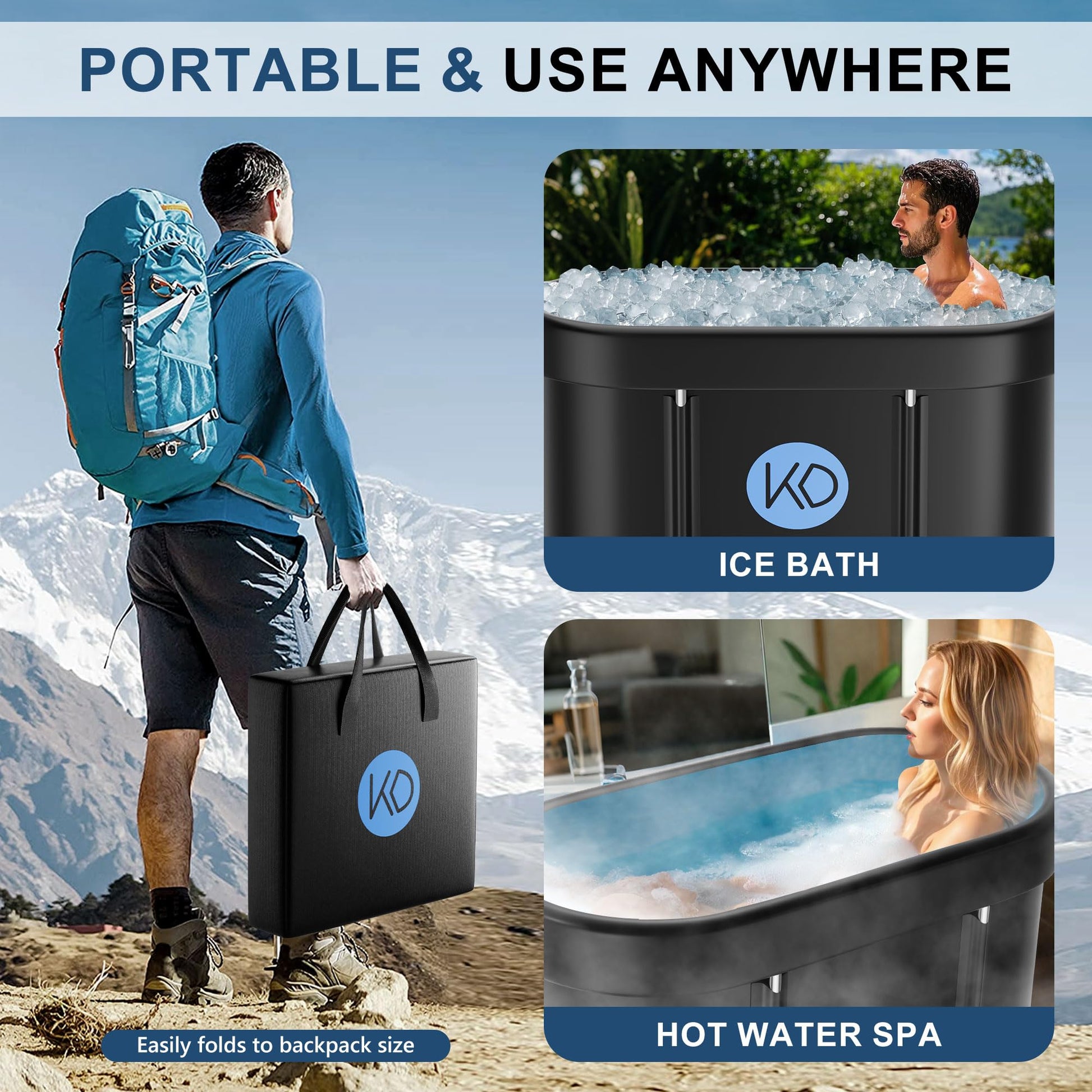 - Portable Foldable Design-Set Up in 60 Secs for Gym, Home & Travel: Skip bulky permanent tubs! Our lightweight (8.8 lbs) portable bathtub pops open instantly—no tools needed. Fits in car trunks for gym, camping, or sports events, and stores flat in closets. Rated #1 in portability by athletes—perfect for on-the-go recovery without sacrificing therapy quality.