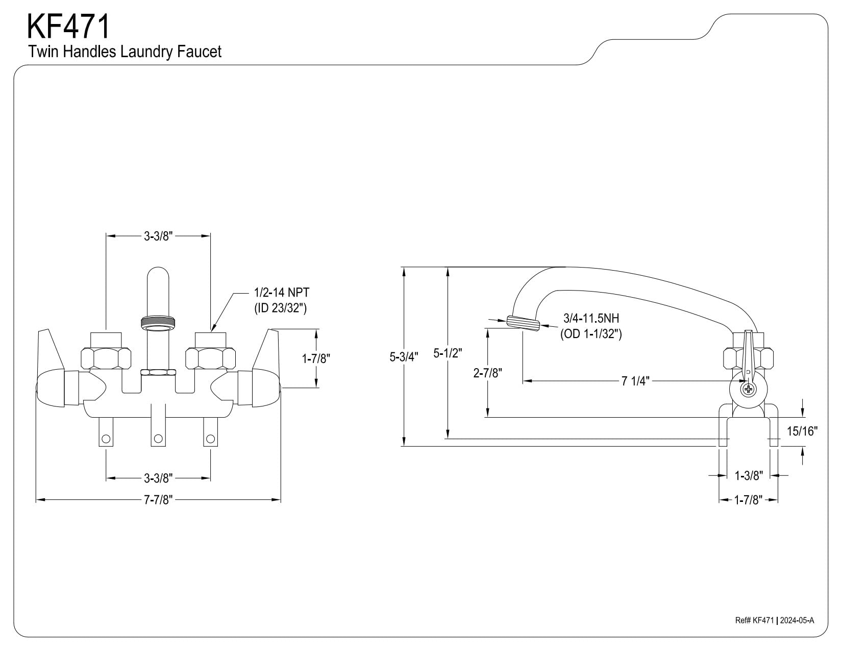 Kingston Brass KF471 Double-Handle 3-Hole Deck Mount Laundry Faucet in Polished Chrome