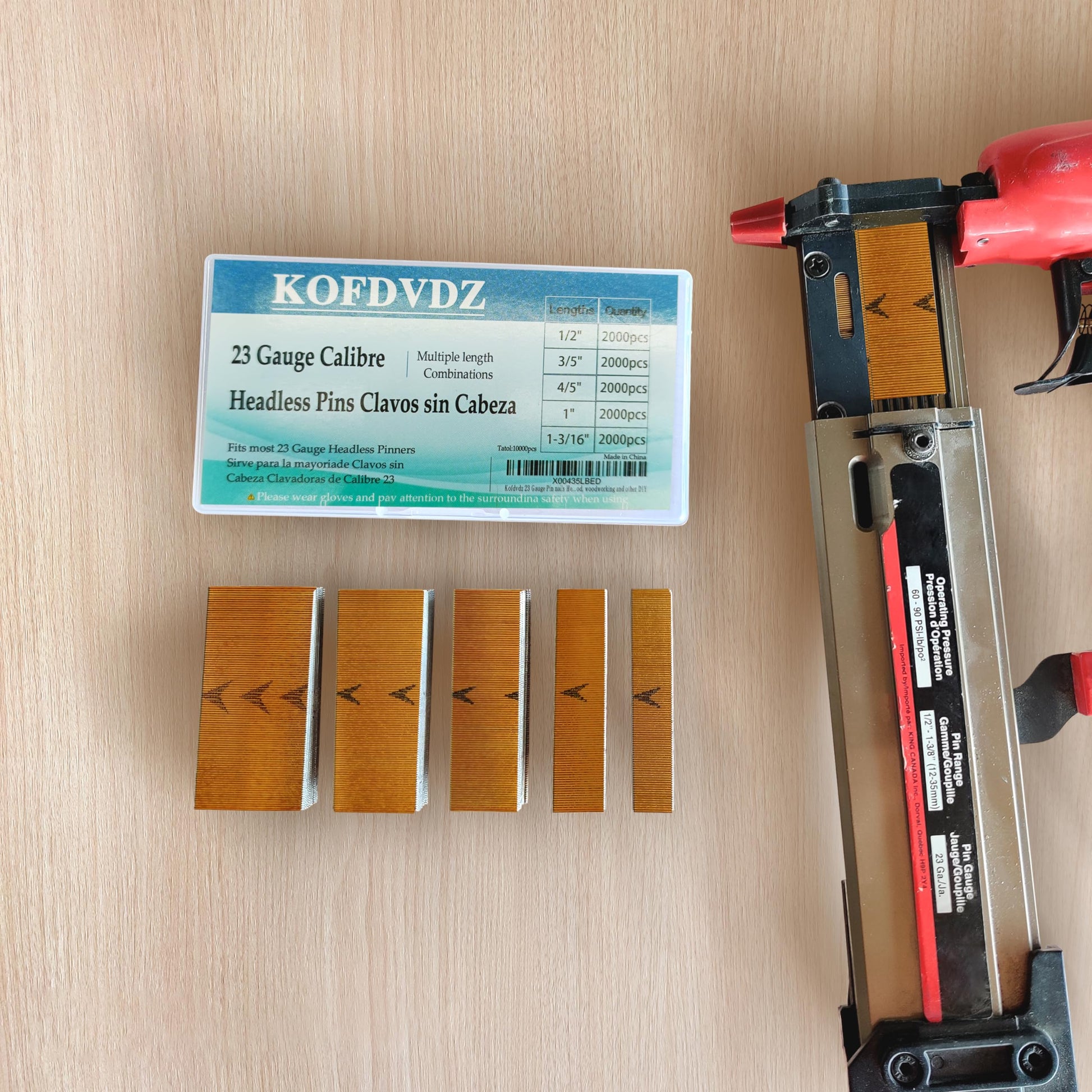 KOFDVDZ 23 Gauge Pin Nails Headless Pinner Nails 10000 Pieces 5 Sizes, 1/2 ",3/5 ",4/5 ",1 ",1-3/16 ", for Multilayer Board, particleboard, Soft Hardwood, Woodworking and Other DIY