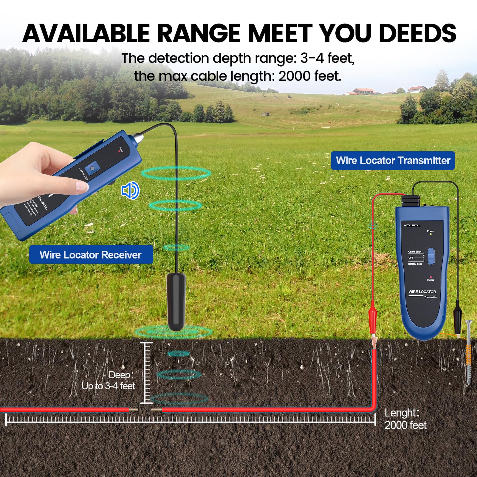 - 【What to use for】The underground wire locator is designed to allow the user to track low voltage cables used for garden and landscape automatic watering systems, and low voltage garden lighting systems. It can also be used to trace other metal cables. Trace and locate underground wires or in-wall wires, the detection depth range is 3 feet and the max. cable length is 1640 feet.
