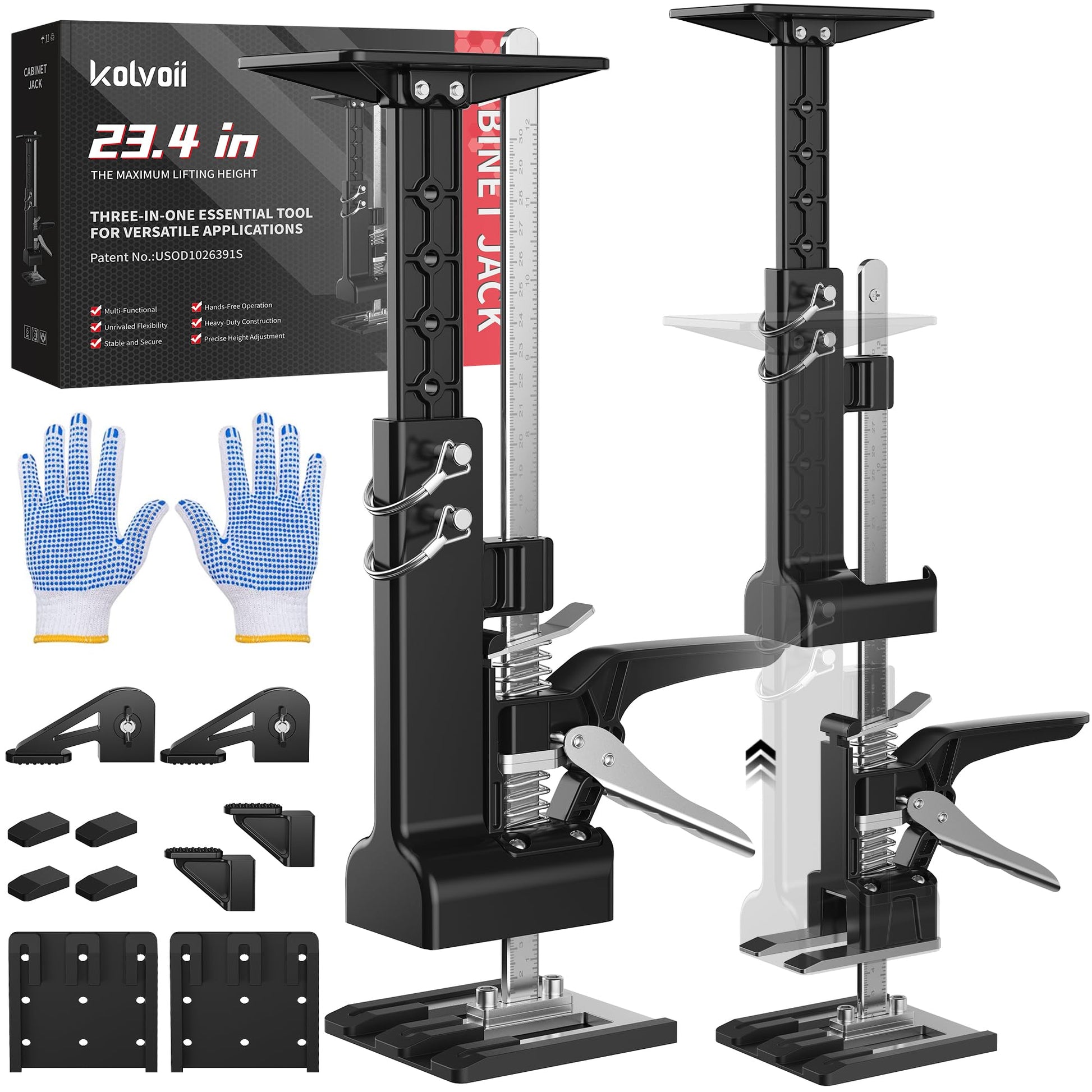 Kolvoii Cabinet Jacks for Installing Cabinets 2 Pack, Hand Lifting Jack Tool Multi-Function 0 to 23.4 Inches Drywall Lift Height Adjustment Third Hand Support System