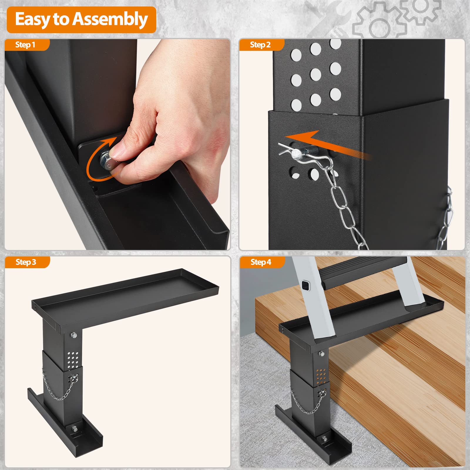 - Easy to Assembly: The ladder extender features a detachable frame that does not require permanent assembly onto your ladder. This makes it easy to attach and remove the stand as needed without leaving any permanent marks or damage on your ladder