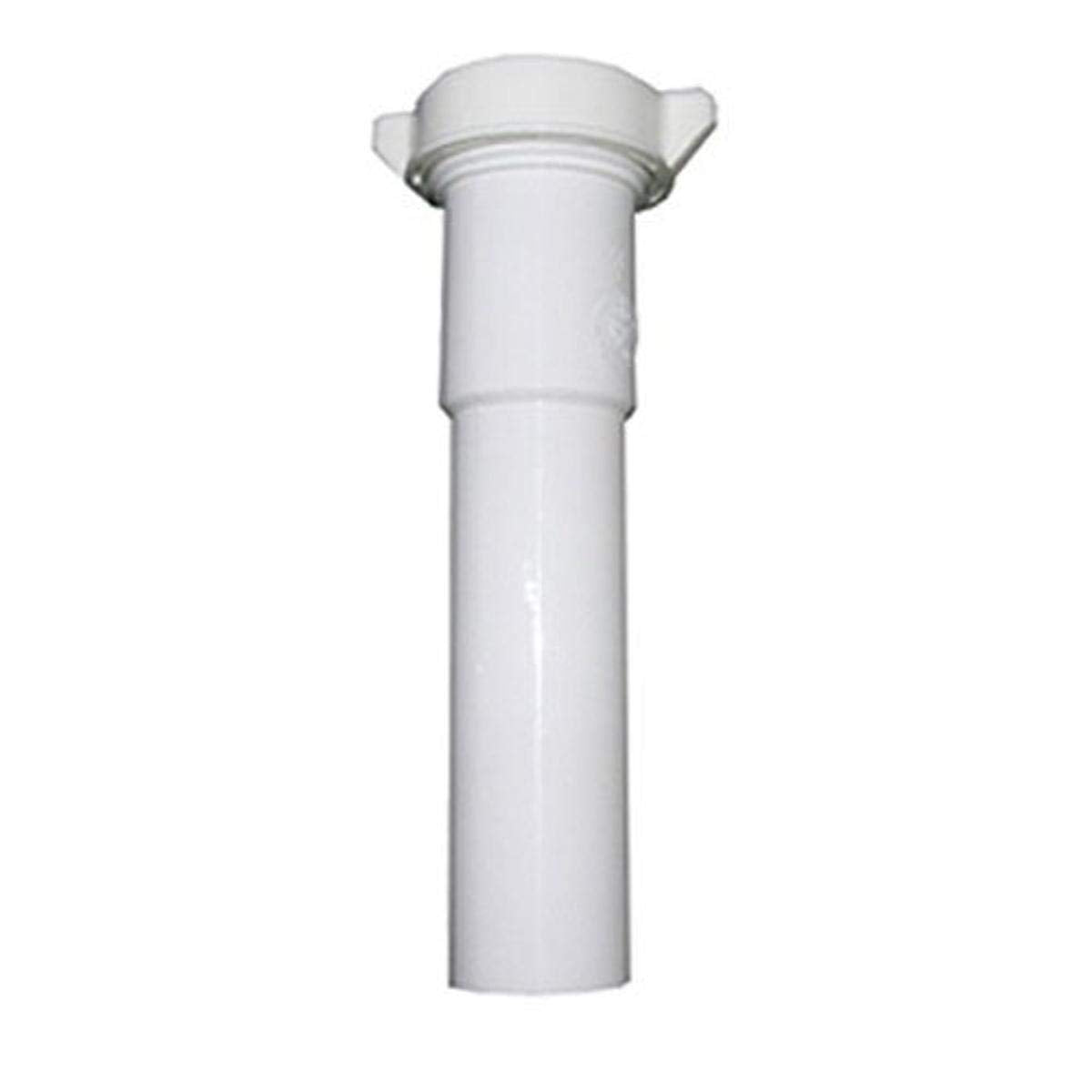 LASCO 03-4345 White Plastic Tubular, 1-1/4-Inch X 12-Inch, Slip Joint Extension, With Nut And Washer. White plastic construction. 1-1/4-Inch outside diameter. Slip joint connection assembly, includes 1 nut and washer for complete installation. Commonly used with kitchen, laundry, or bathroom sinks. For use as Lavatory drain extension pipe.