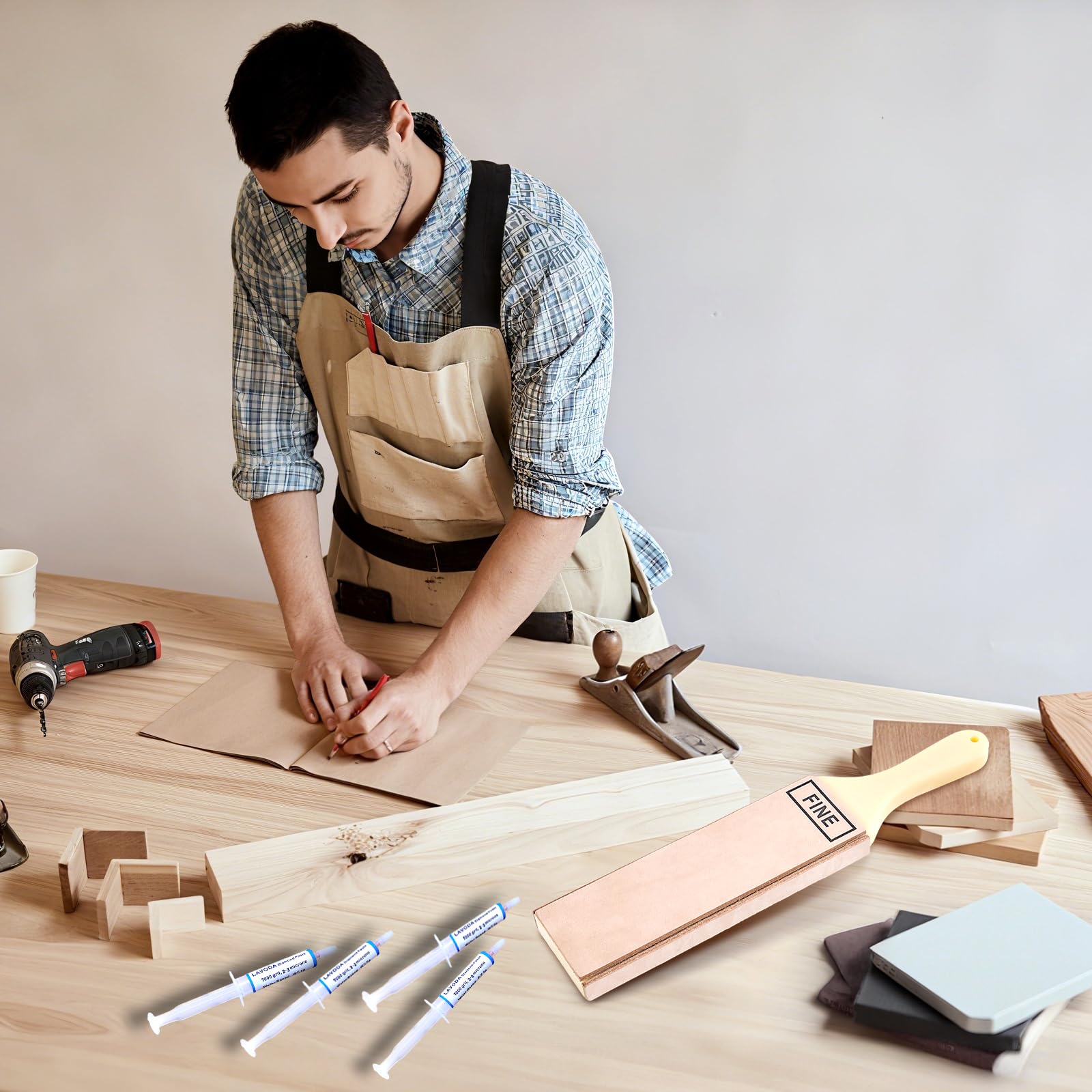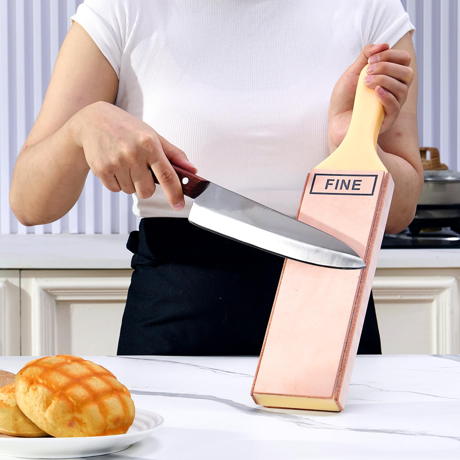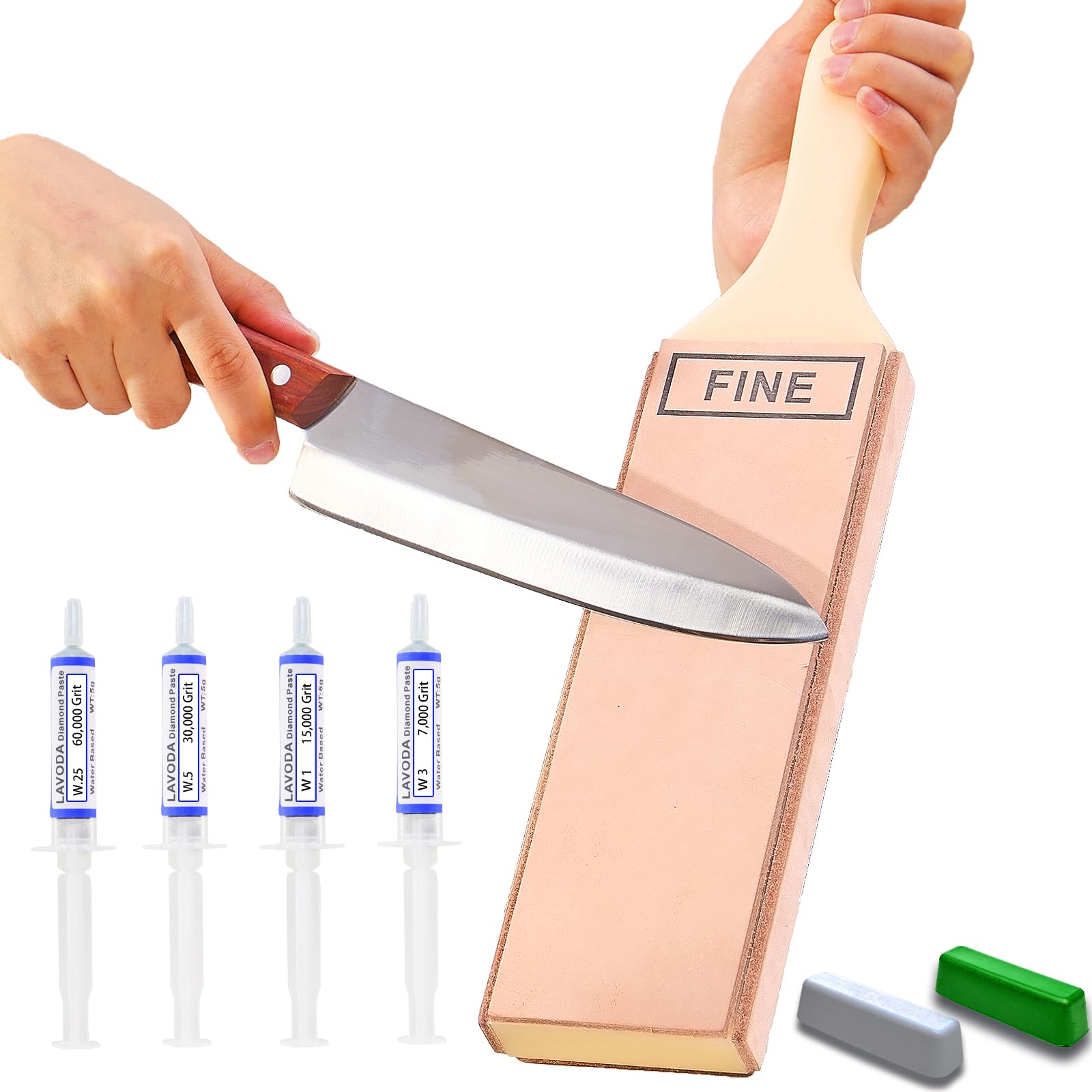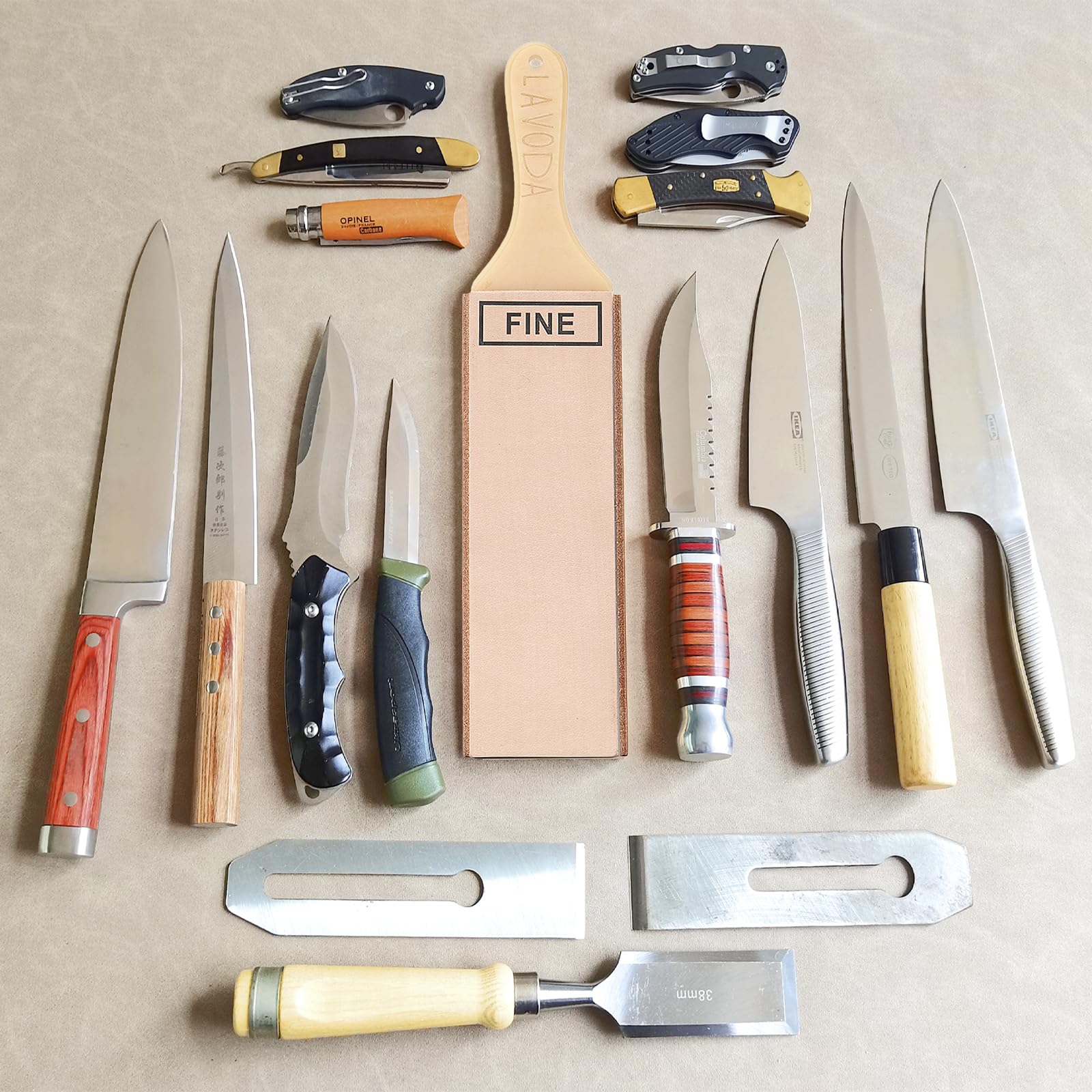 LAVODA 4-Side Leather Strop 15.7"x3" – Diamond Paste+Heavy Duty Buffalo+Nylon Base, Ultimate Knife Polishing&Honing Kit, Warp-Free Design for Mirror Edges on All Blade Types