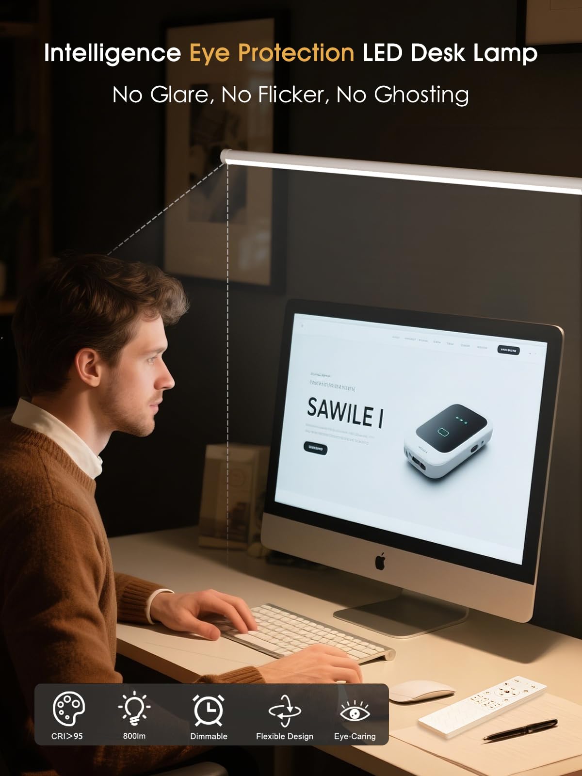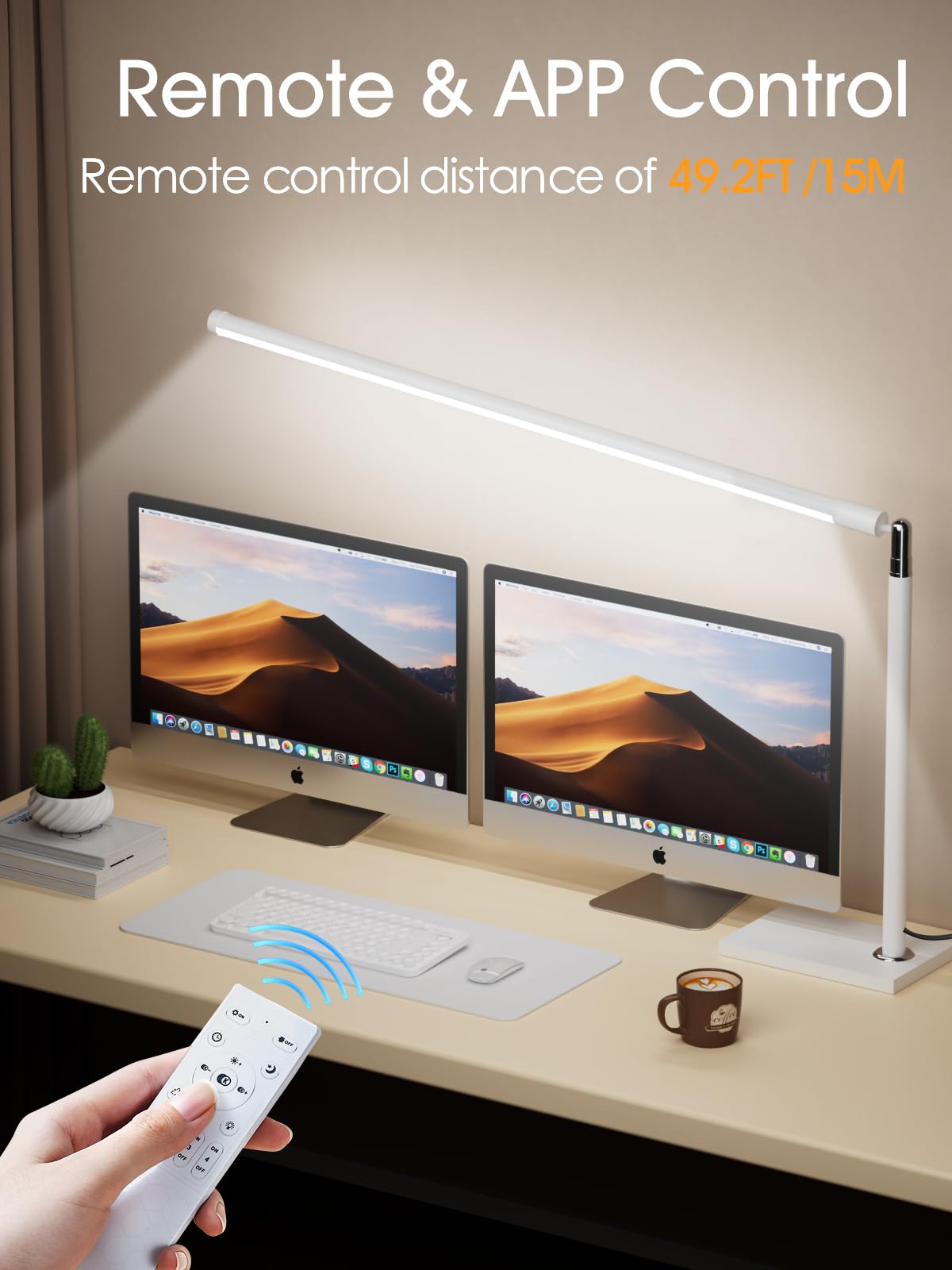 - Smart Remote & App Control (50ft Range) : Control your adjustable desk lamp effortlessly using either the 50ft-range remote or smartphone app (iOS/Android). This smart desk lighting solution lets you adjust settings from your couch or bed - ideal for movie nights, bedtime reading, or when your hands are occupied with work.
