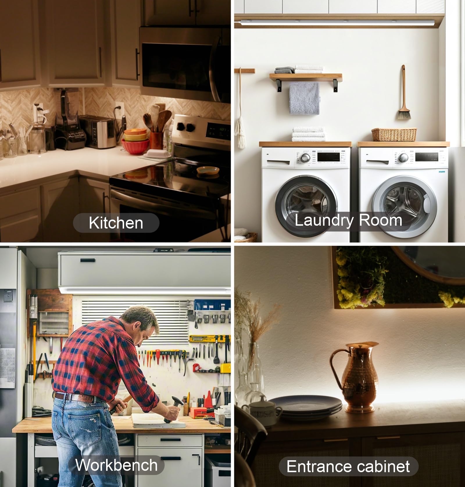 - Ultra Slim Design: Low profile, slim under cabinet lighting 0.75 inch Wide AC120V under counter lights for kitchen. Easy to hide in your Kitchen, Counter, Desk, Sink, Shelf, Workbench or Cupboard. Linkable with up to 32 Feet (9.75m). Flexible to DIY different length as you wish