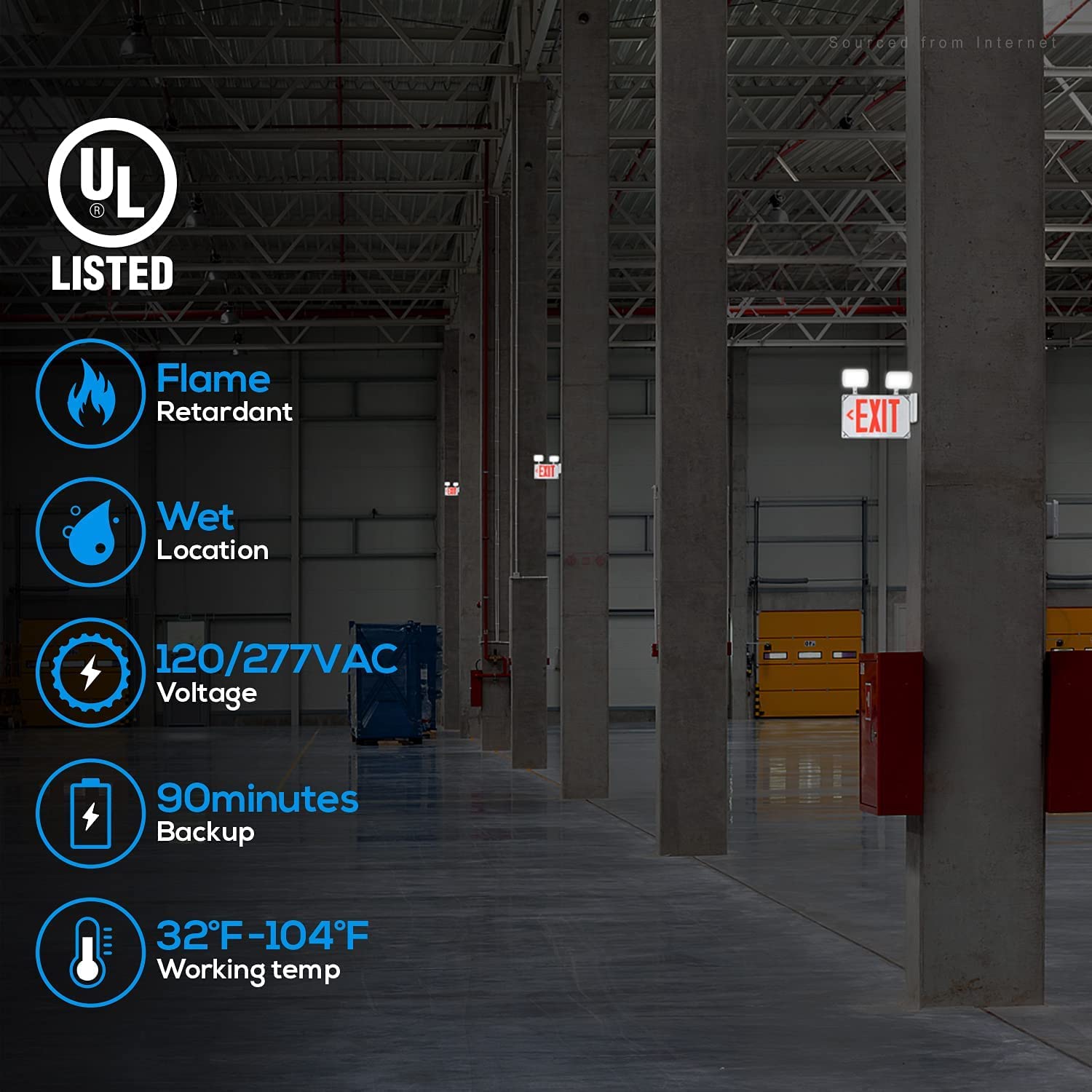 - Commercial Grade Protection Design: Made with ABS flame-retardant material, this combo LED emergency exit sign light is safe from rain, dust, snow, water, and other harmful factors. You can use this wet location LED exit sign light outdoors like warehouses, malls, schools, restaurants, basements, hotels, churches, exhibition halls, and other commercial buildings