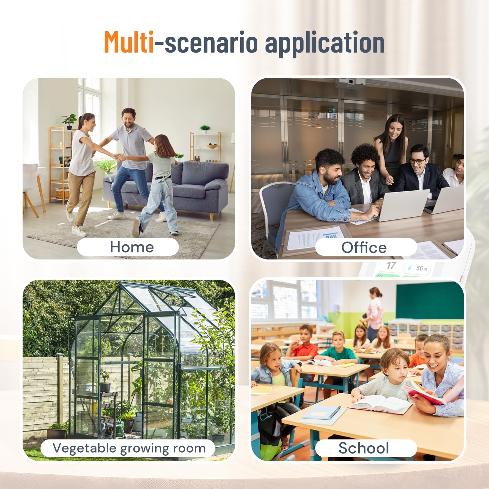 - WIDE APPLICATION: This portable air quality monitor is suitable for testing the air quality in multiple indoor places such as living rooms, kitchens, basements, offices, planting rooms, and cars. Its compact design and ease of use make it the perfect solution for maintaining a healthy environment