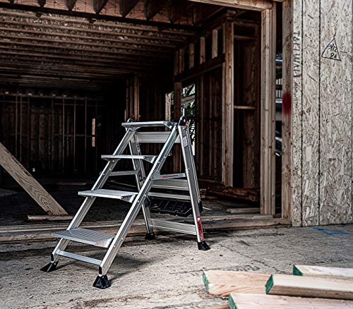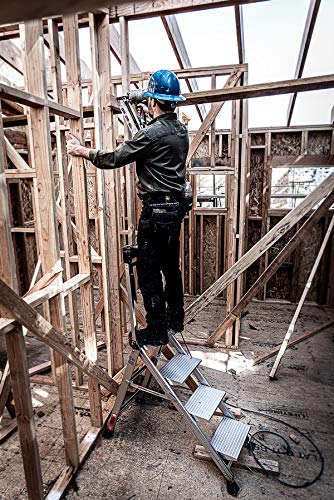 - Lightweight aluminum stepladder uses a non-slip staircase design for comfortable and sturdy use.
