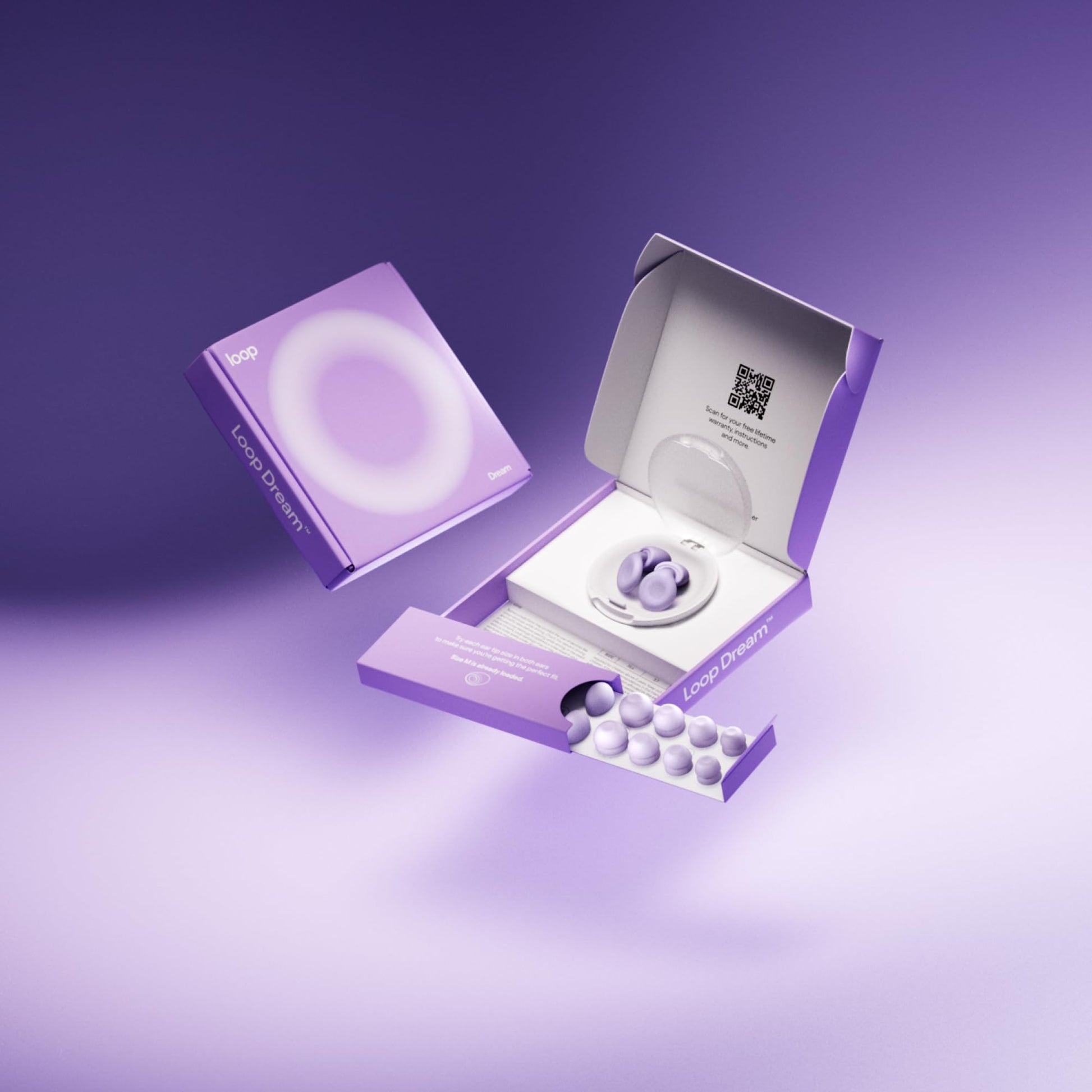 - IN THE BOX – 1 set of Loop Dream earplugs, 4 sets of Loop Dream Foam Silicone Ear Tips (sizes XS + S + M + L), 4 sets of Loop Dream Double Tips (sizes XS + S + M + L), and 1 Loop Dream Carry Case, featuring a no-slip grip bottom and a sizeable compartment for easy access at your bedside.