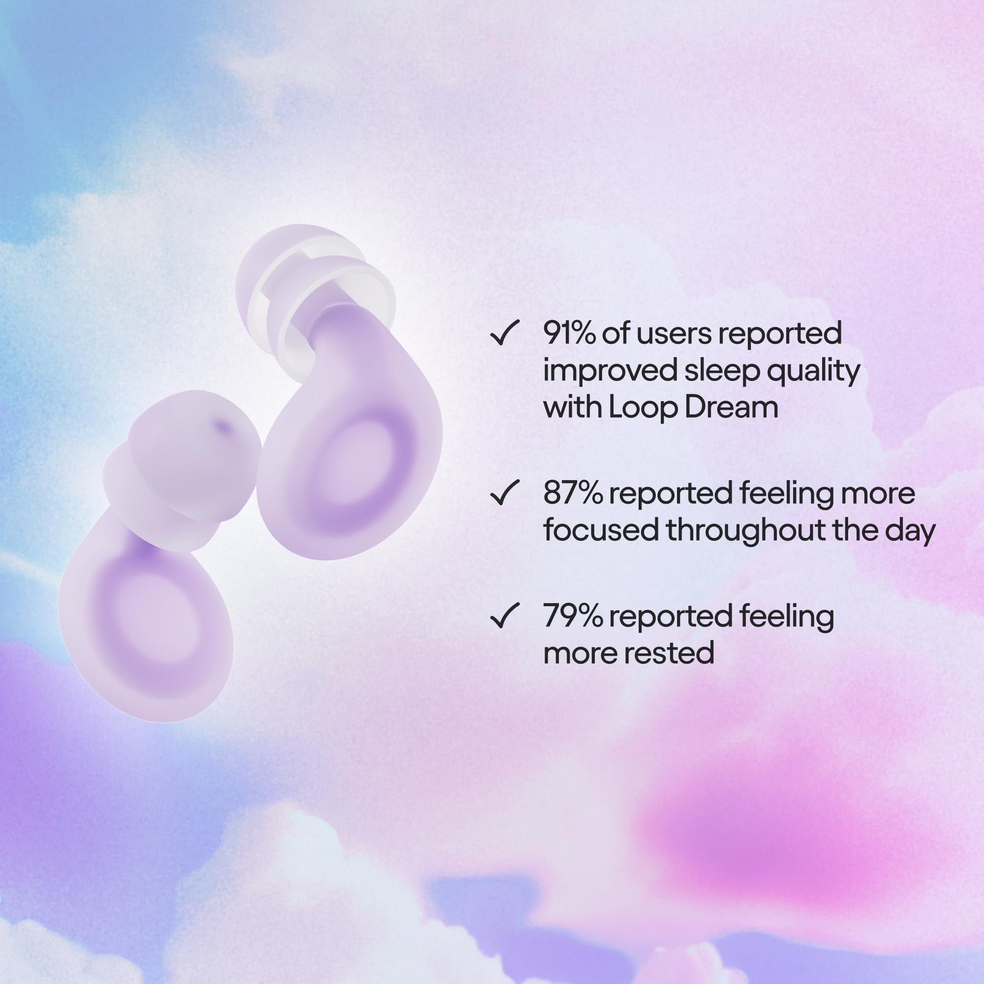- IMPROVED SLEEP QUALITY – 91% of users reported improved sleep quality with Loop Dream, our first earplug engineered specifically for bedtime. Designed with an innovative silicone body for maximum comfort when side-sleeping, these earplugs offer an impressive 27 dB (SNR) of noise reduction to muffle out disturbances and ensure a dreamy night’s sleep.