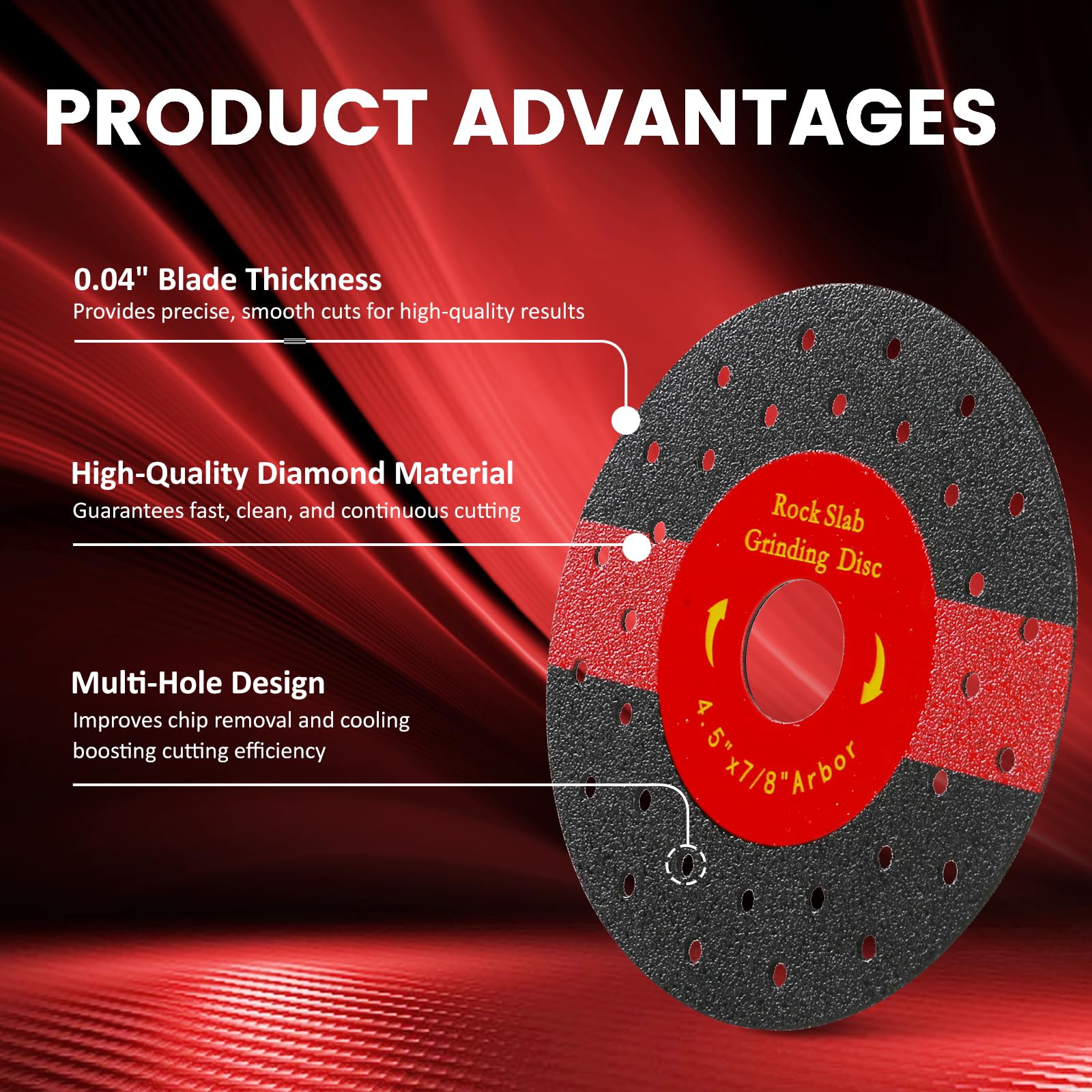 - HIGH EFFICIENCY - Unlike other traditional tile cutting disc, our rock slab disc adopts an upgraded widened porous design that significantly enhances chip removal speed and heat dissipation. This upgraded structure prevents overheating, extends blades life, and ensures consistent performance. The precise design and sharp edge guarantee straight cutting lines and smooth cutting surfaces, improving cutting efficiency while maintaining your safety during use.