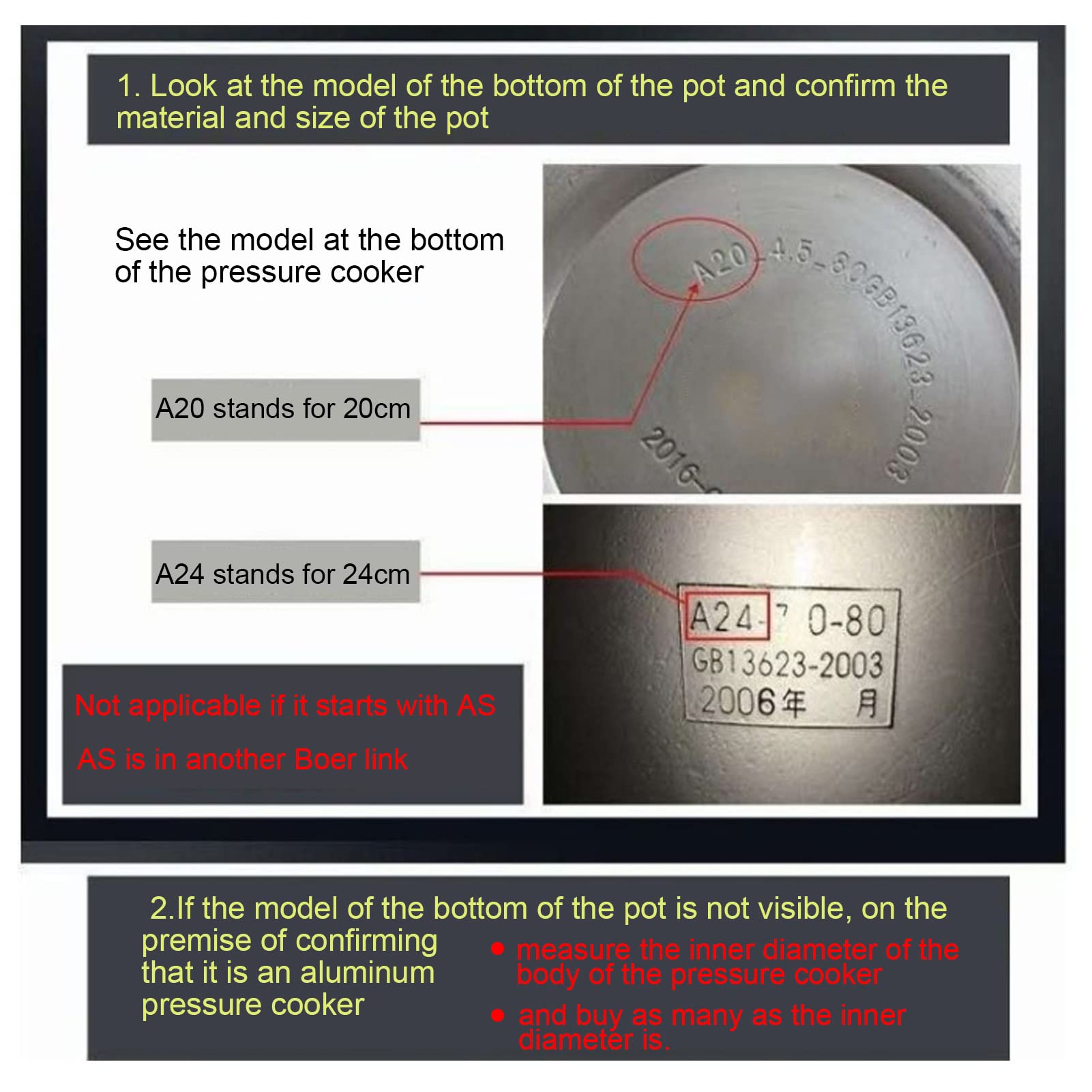 The product is aluminum alloy pressure cooker, but you need to pay attention to the model of the bottom of the pot. The one that starts with A can be used, and the one that starts with AS cannot be used. If you can't see the model, if the pressure cooker is determined to be made of aluminum, measure the inner diameter of the pressure cooker body.
