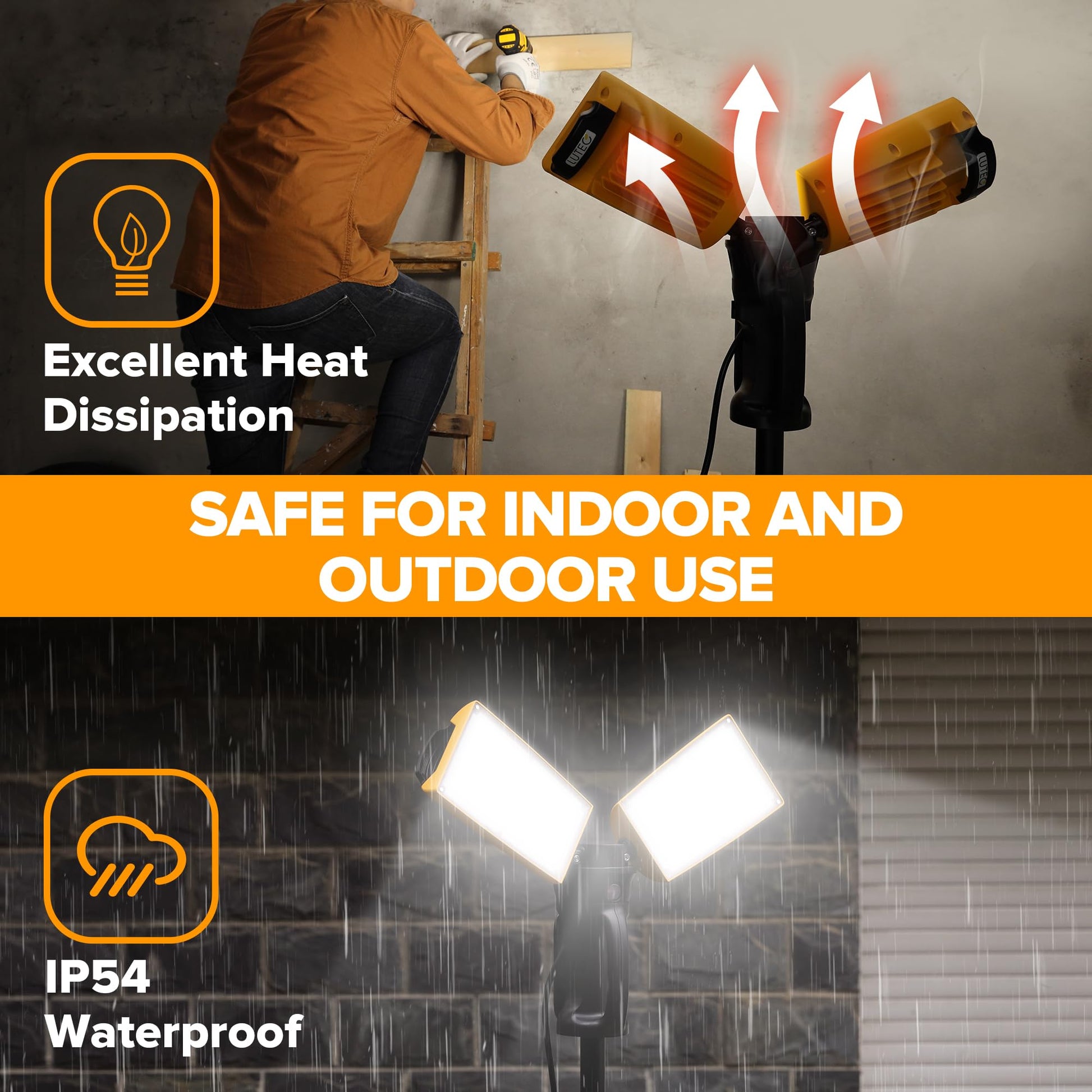 LUTEC 【Upgraded】 6290Pro 15000 Lumen 105 Watt Dual-Head LED Work Light with Telescoping Tripod, Work Light with Stand Rotating Waterproof Lamps and 8 Ft 3-Prong Power Cord