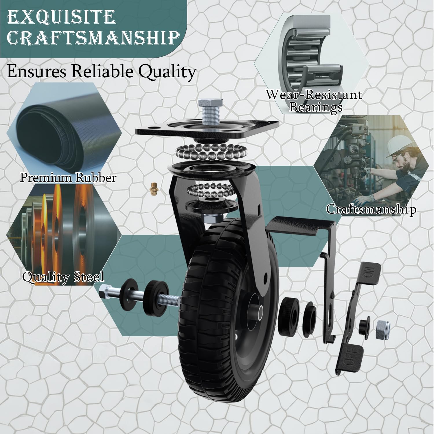 Lygoeege Swivel Heavy Duty Caster Wheel, 8 Inch*2, 1000lb Capacity, Black Rim, Solid Rubber, Cast Iron,Brake Casters,Outdoor, Flat Free for Carts, Dolly, Workbench,Trolley,DIY Tools
