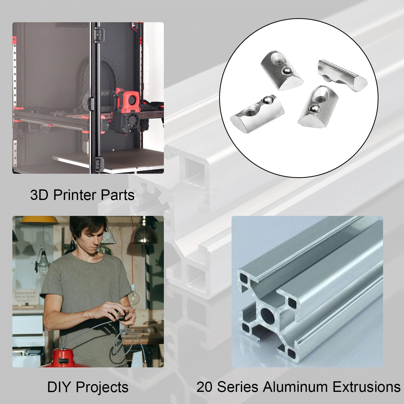 - Spring Loaded Design - Perfect for situations where you forget to add the T-nuts during assembly or want to add attachments to your printer without having to disassemble it first. When you remove the screw, the handy spring-loaded ball will keep the nut in place, even on vertically oriented parts