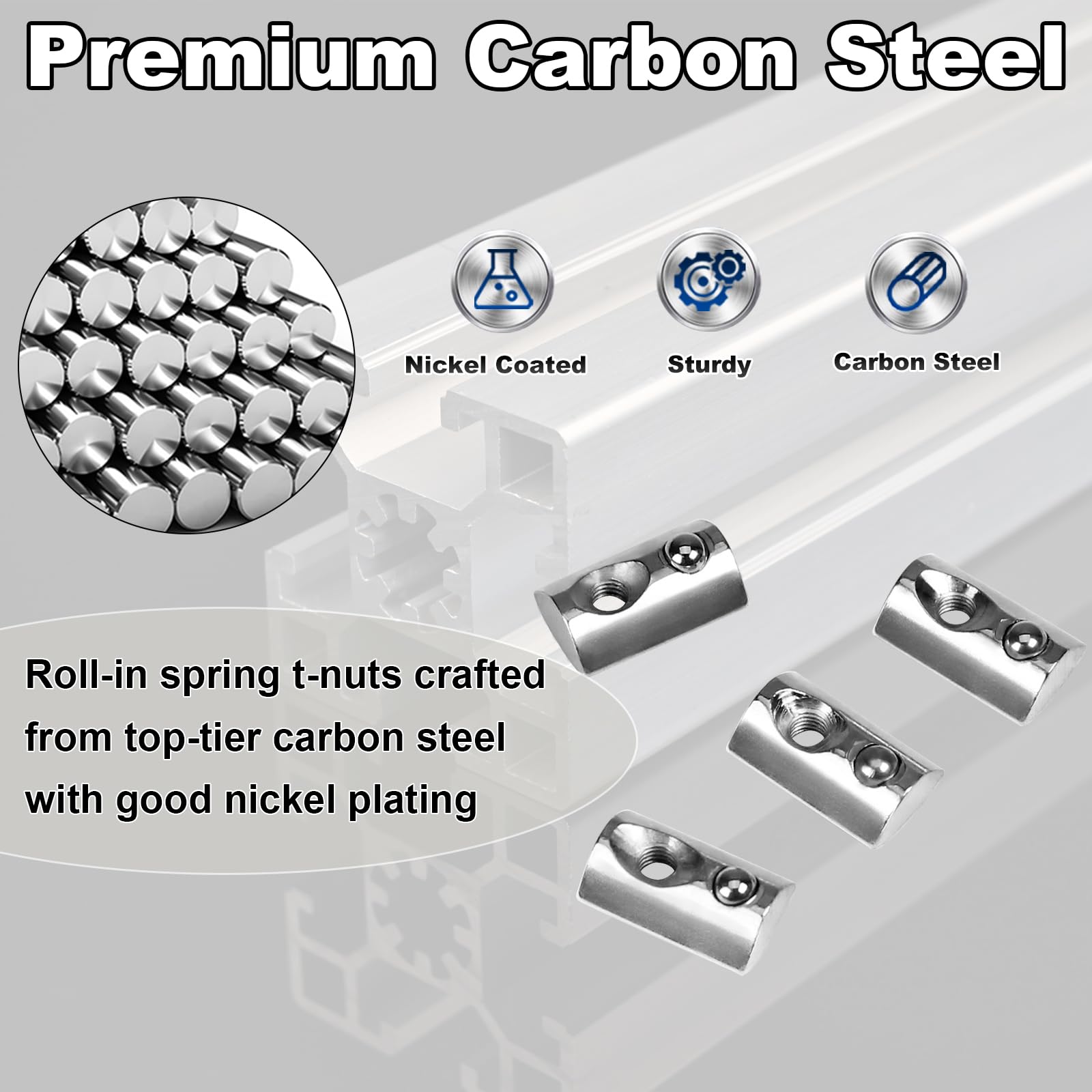 - Premium Carbon Steel - Roll-in spring t-nuts crafted from top-tier carbon steel with good nickel plating, offering durability, corrosion resistance, and reliability