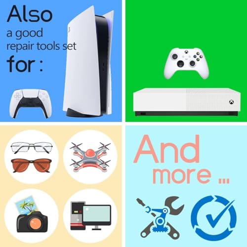 - ? ¡¼Widely Using¡½This small repair tools kit has 17 bits(PH000 PH00 PH0, SL1.2 1.5 2.0, Torx T3 T4 T5 T6, Torx Security T8H T9H, Pentalobe P2/0.8 P5/1.2, Tri-wing Y0.6, MID Bit - 2.3), 1 Aluminum Magnetic Screwdriver, 1 Double Head Spudger, 1 Brush, 1 Tweezer, 1 Suction Cup, 2 Sizes Triangle Picks, 2 SIM Pins. Perfect for disassemble or repair work. Torx Security Bit Set T6 T8H T9H T10H PH00 PH0 Bit Kit for PS4 PS5 Xbox One. PH000 00 0 Flathead Slot 1.2, 1.5, 2.0 for Eyeglasses and more gadgets.