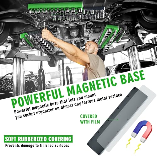 - STRONG MAGNETIC BASE: Features a powerful magnetic base that securely holds sockets in place, even when the tray is turned upside down. Easily attach the tray to any steel surface for convenient access.