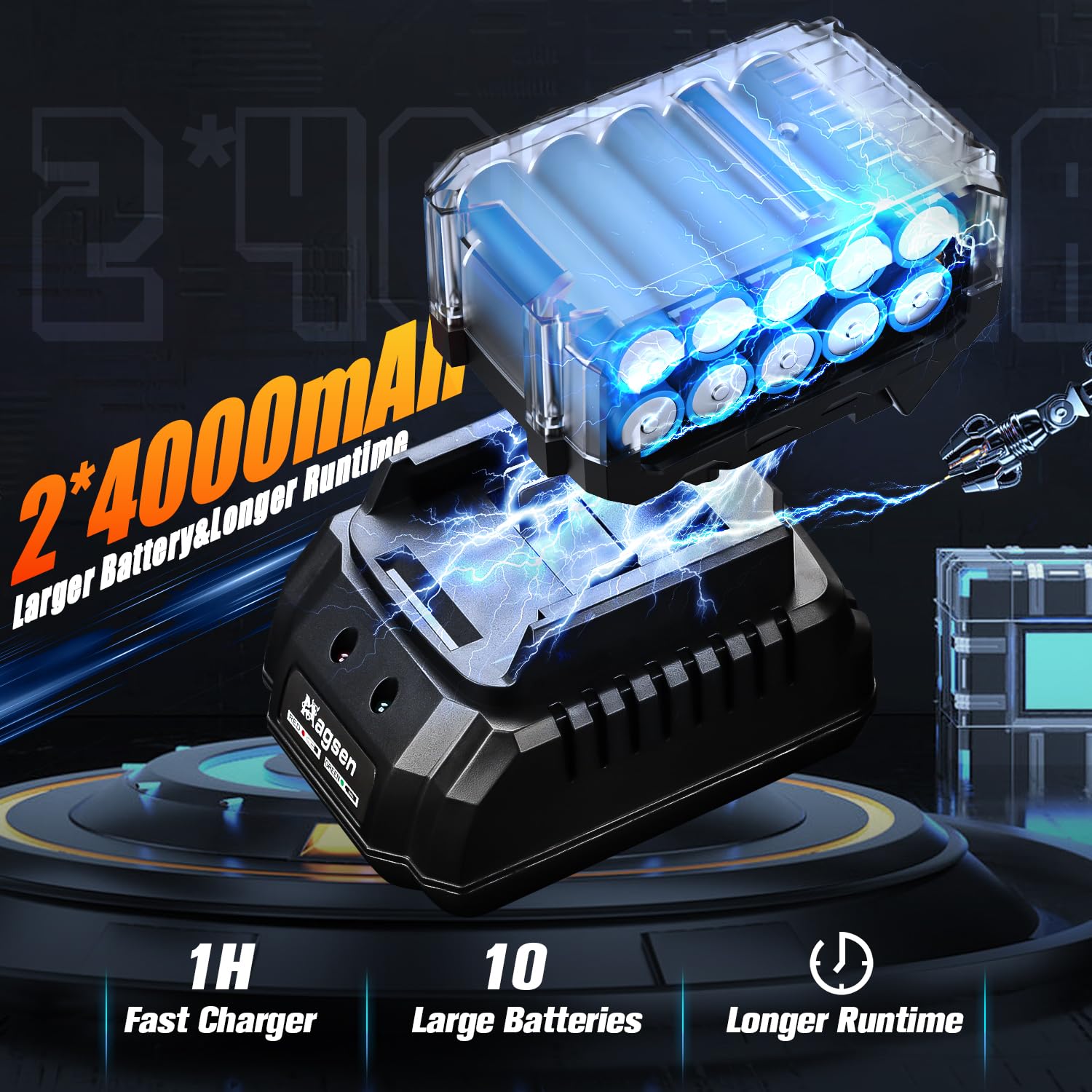 - 【2*4000mAh Battery& Fast Charger】Our rechargeable compact wrench comes with two 4000mAh batteriery pack, (21V battery contains 10 pieces), and a fast charger(charger indicator red for charging, green for charging complete). Its wireless design allows for convenient use without the restrictions of cords,allowing you to work easily!