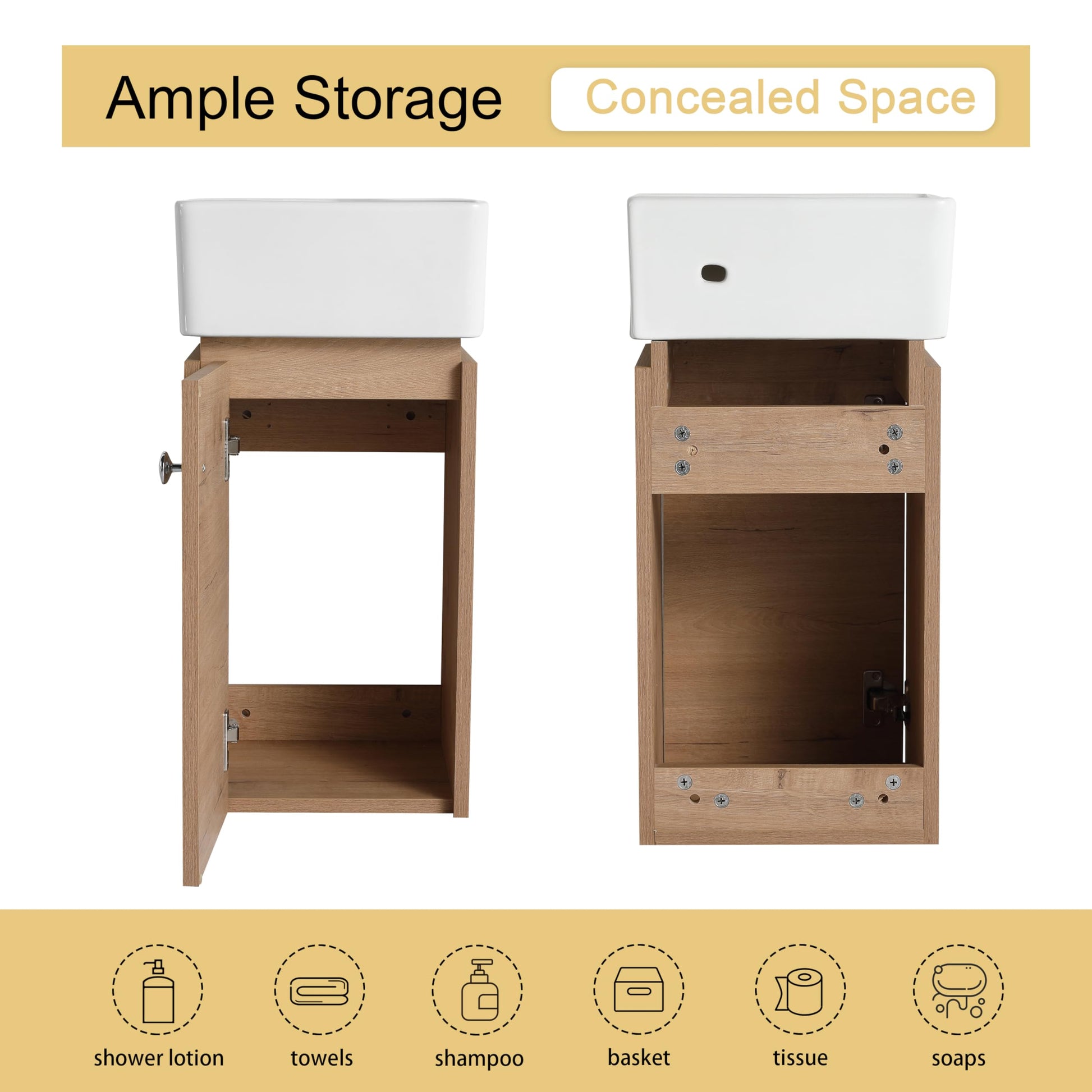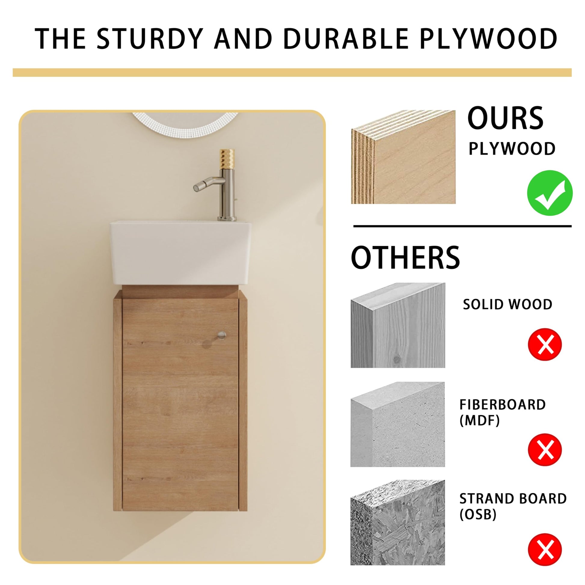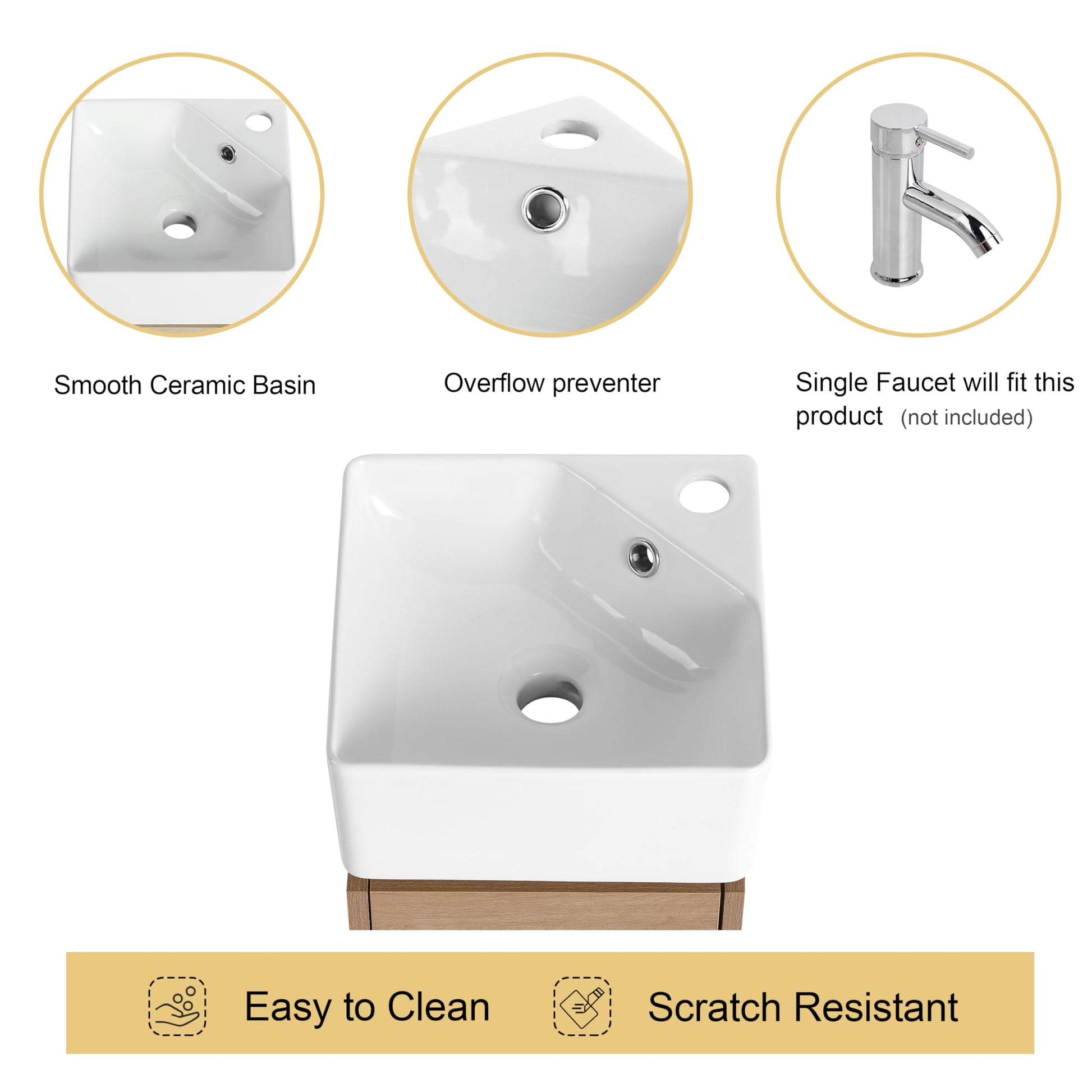Malwee 12 Inch Wall-Hung Vanity, Corner Vanity, 12'' Floating Bathroom Vanity with Sink, with 1 Door and White Ceramic Basin Sink Top (045-12)