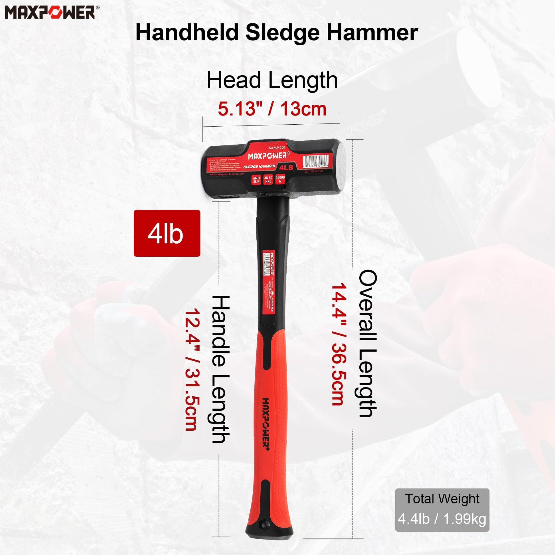 - MAXPOWER 4lb sledge hammer, 12-inch fiberglass handle