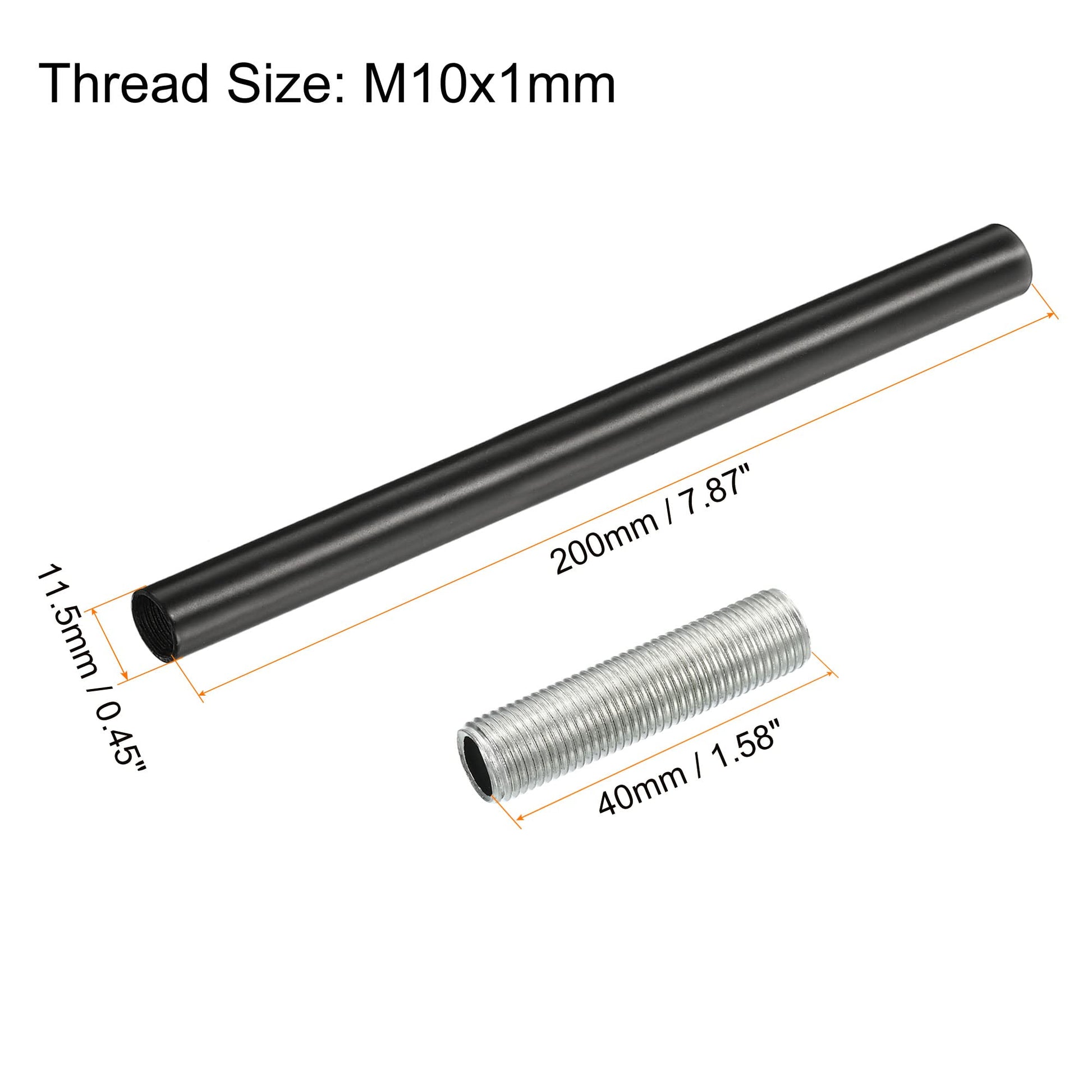 - Material: Iron Electroplated; Color: Black; Thread Size: M10; Thread Pitch: 1mm; Long Coupling Nut Size: 11.5x200mm / 0.45"x7.87" (Diameter*Length); Threaded Pipe Length: 40mm / 1.58"