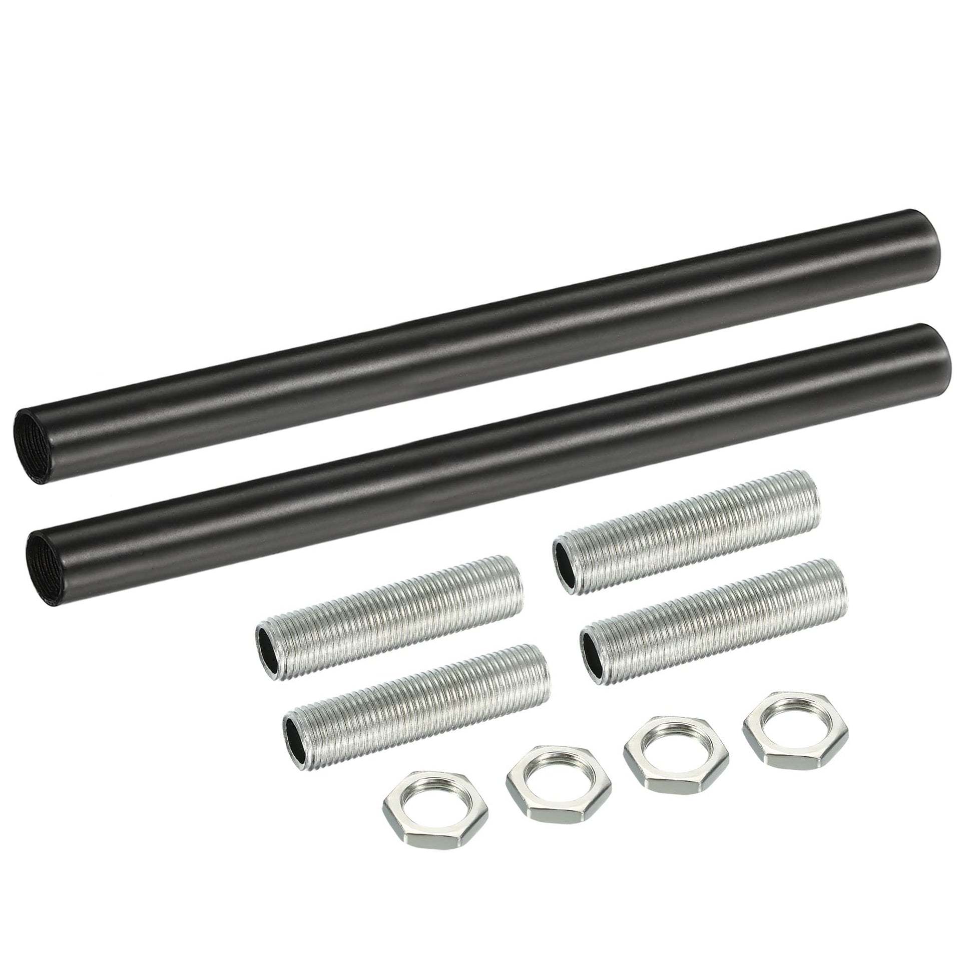 MECCANIXITY Threaded Extension Rod, 7.87" Lamp Pipe with Connector Light Fixture Parts for Pendant Light Island Lighting Chandeliers Stems, Black 2 Set