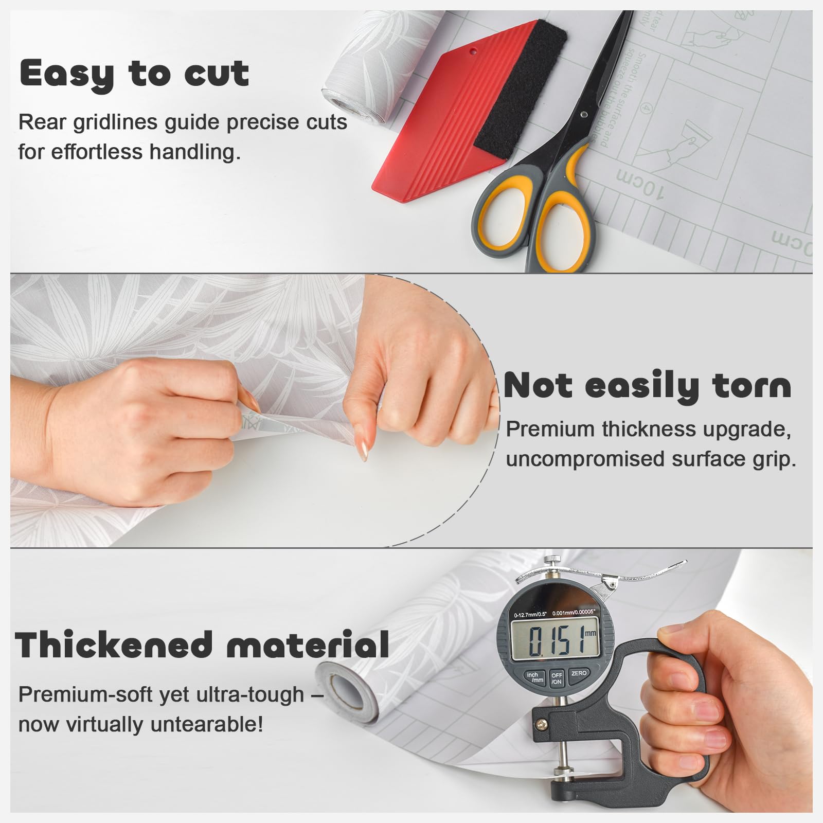 - 【SIZE】: 17.3 inches x 197 inches/roll (23.68 square feet/roll), Vinyl peel and stick wallpaper. The grid line distribution on the back lets you cut easily