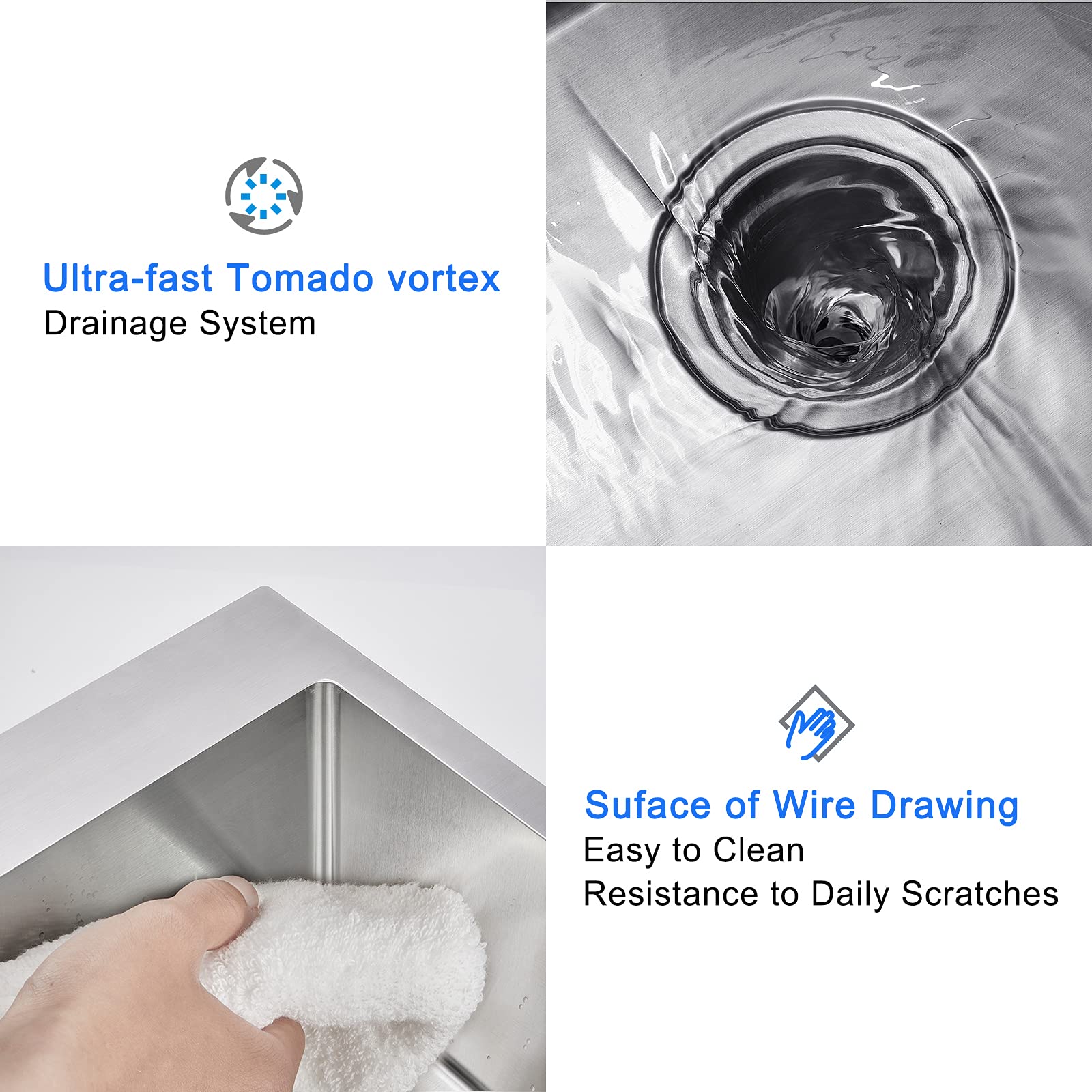 - 【Quality Material】-The kitchen sink drop in is made from T304 stainless steel that ensure durability and long-lasting performance. It is resistant to stains, and corrosion, making it a reliable choice for daily use
