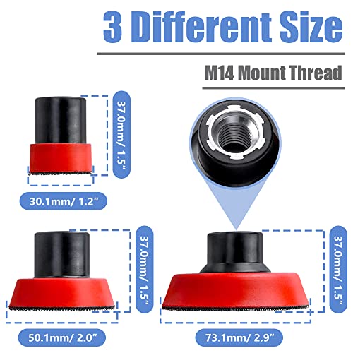 Mesee 3 Pieces Hook and Loop Backing Pad for Angle Grinder, M14 Thread PU Polisher Backer Pad Plate Rotary Sanding Buffing Machine Accessories - 1 Inch/ 2 Inch/ 3 Inch