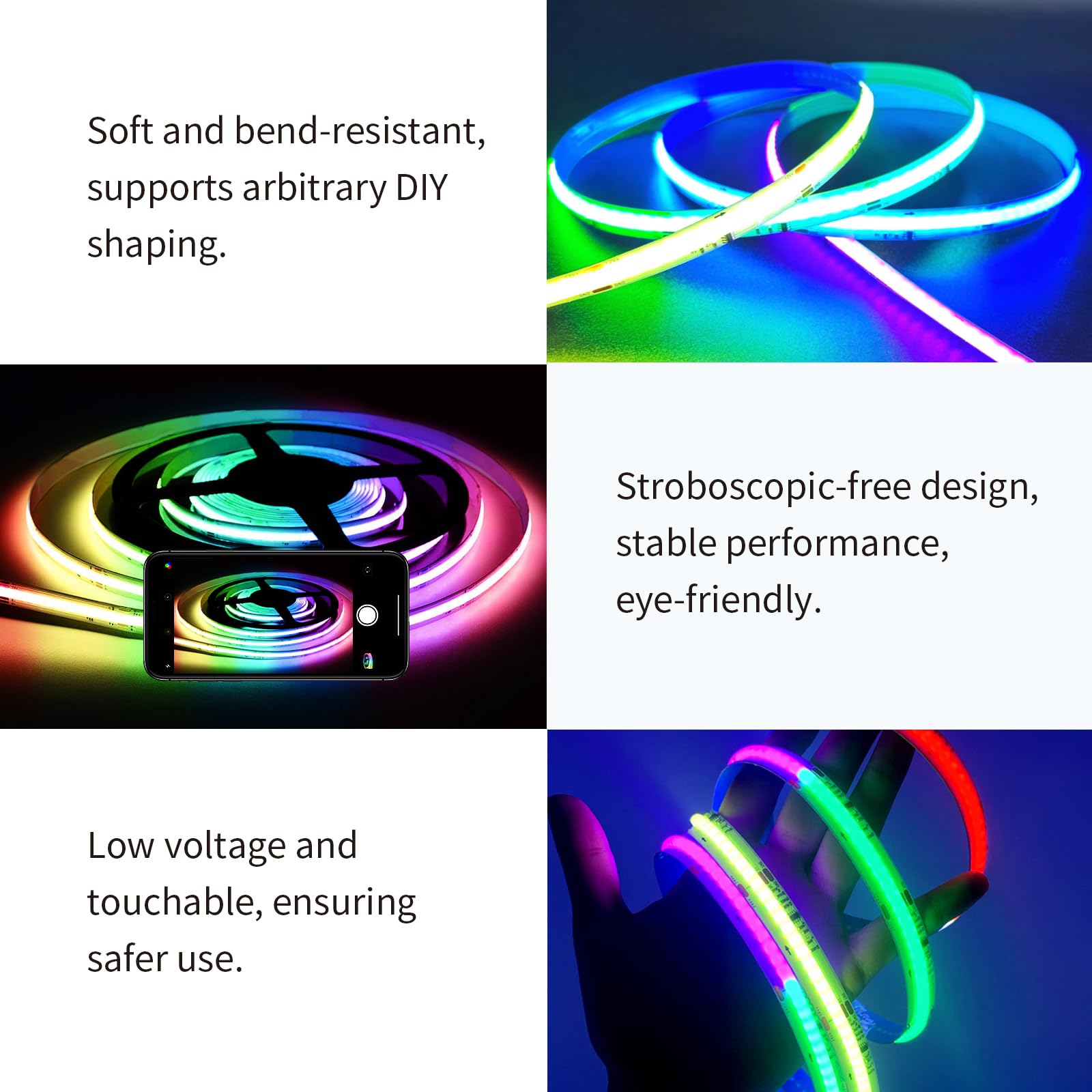 Details: COB RGB Lights RGB+IC Led Strip Lights with RF Controller Music Synchronization for Game Room Party TV Wall
