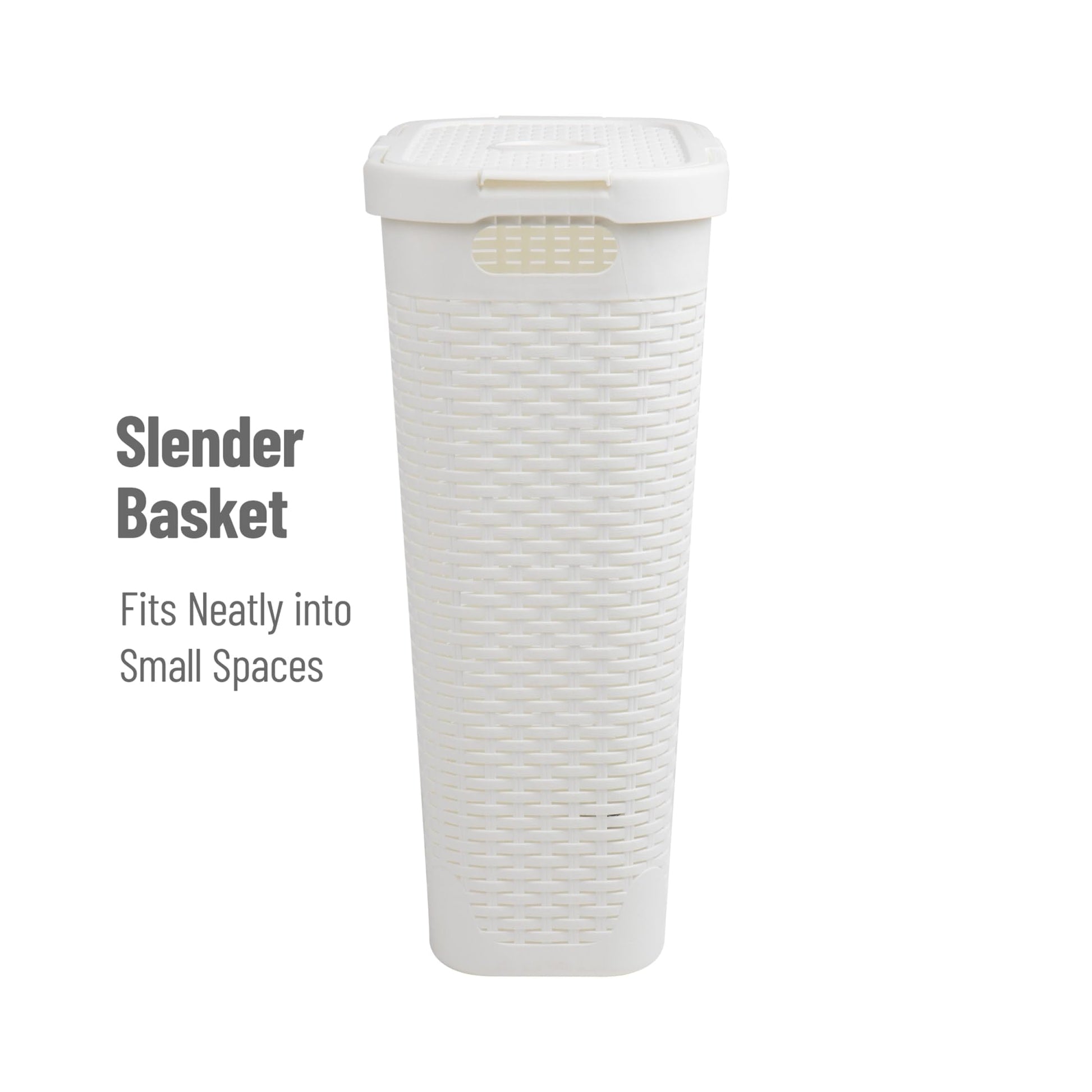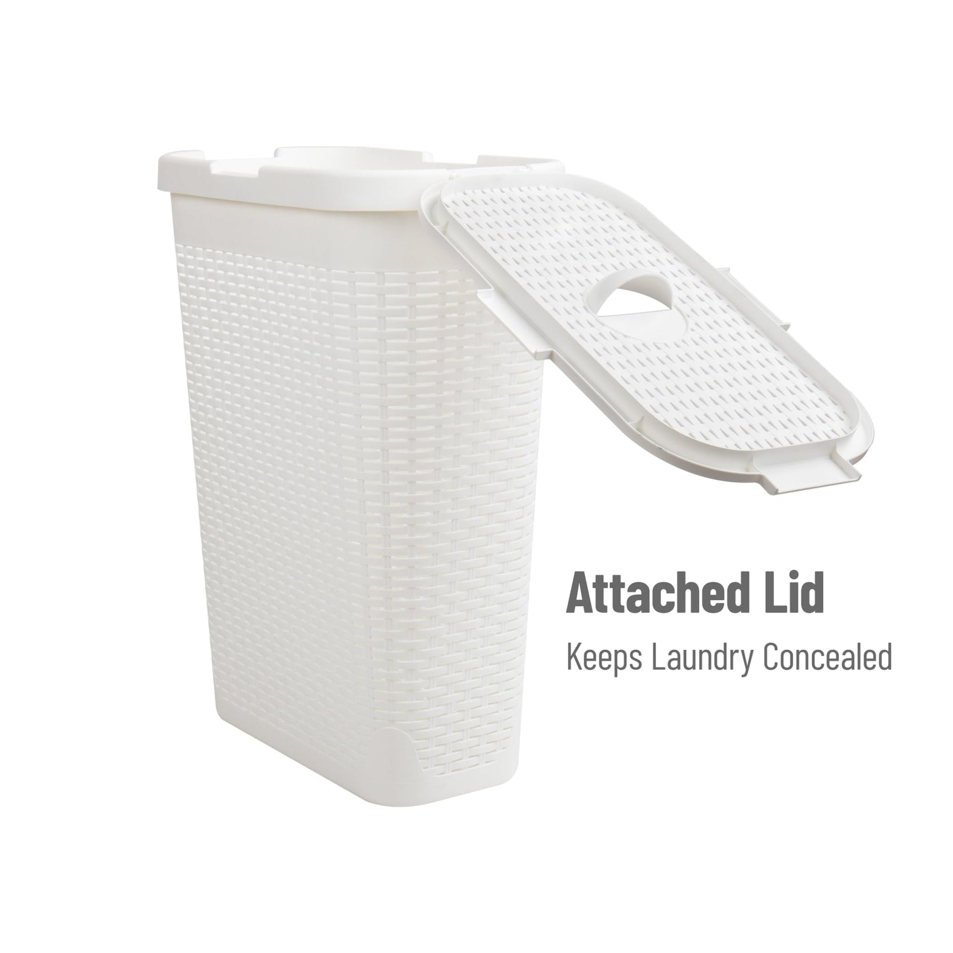 Mind Reader 40L Slim Laundry Hamper, Clothes Basket, Lid, Wicker Design, Plastic, 18"L x 10.4"W x 23.5"H, White