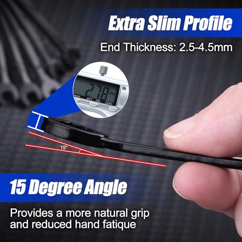 Mini Wrench Set Metric 10-Piece Ignition Wrench Set, 4-11mm Open End and Box End Combination Wrenches, Super Thin Small Wrenches with Zipper Bag and Key Ring for Small Fasteners, Black