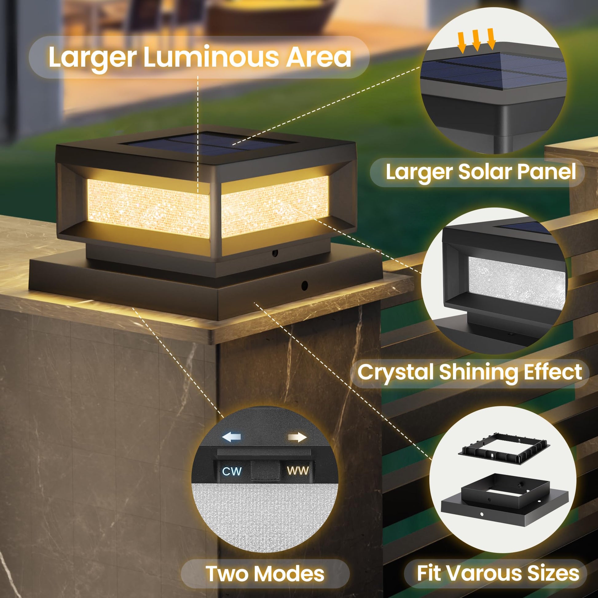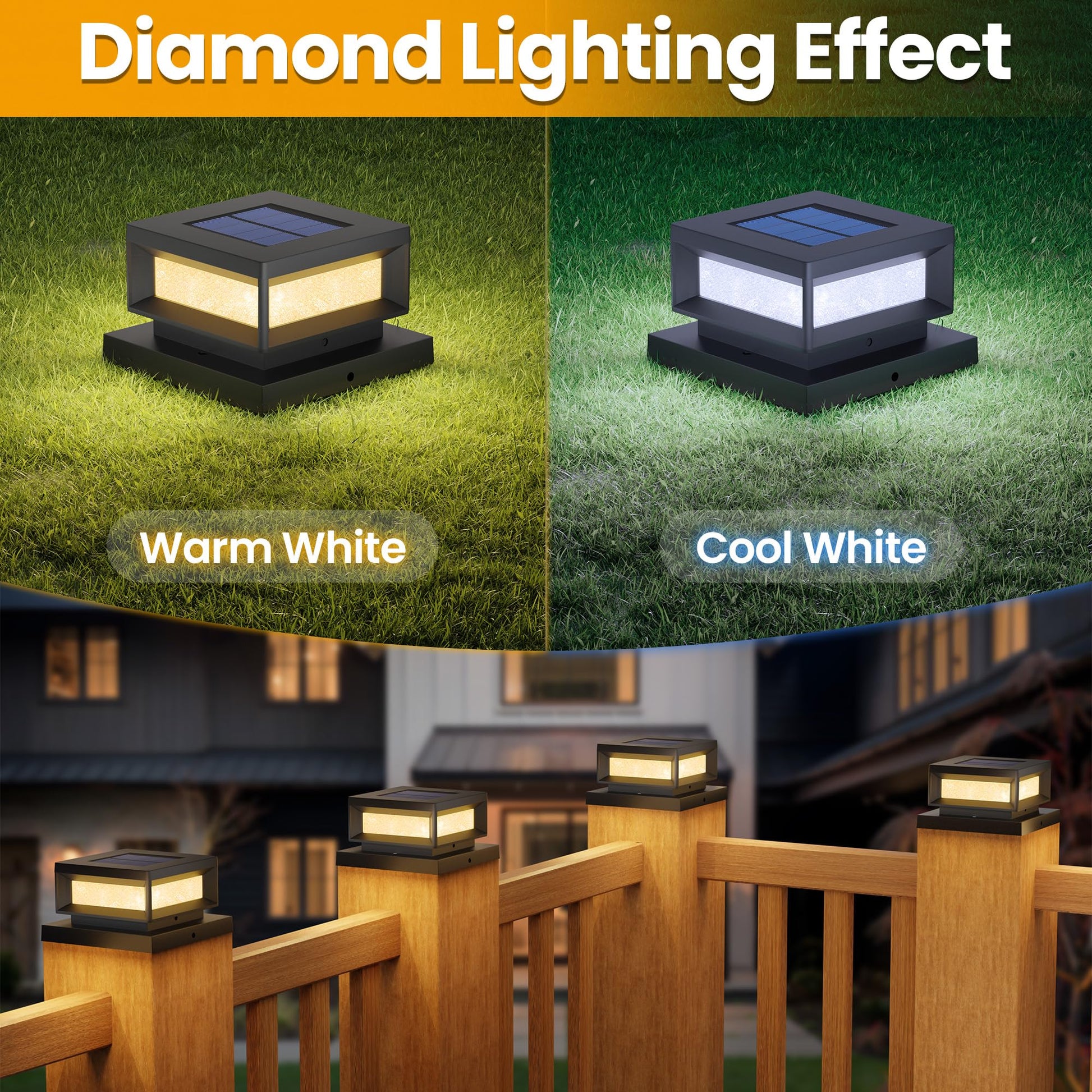 - Two color modes: Transform the ambiance of your outdoor spaces with the 12-pack Mlambert solar post cap lights, featuring versatile warm and cool white lighting tones that can be effortlessly switched to suit your preferences. These stylish deck fence post cap lights exude a perfect balance of brightness and softness, infusing an elegant touch to your decks, patios, and other outdoor areas
