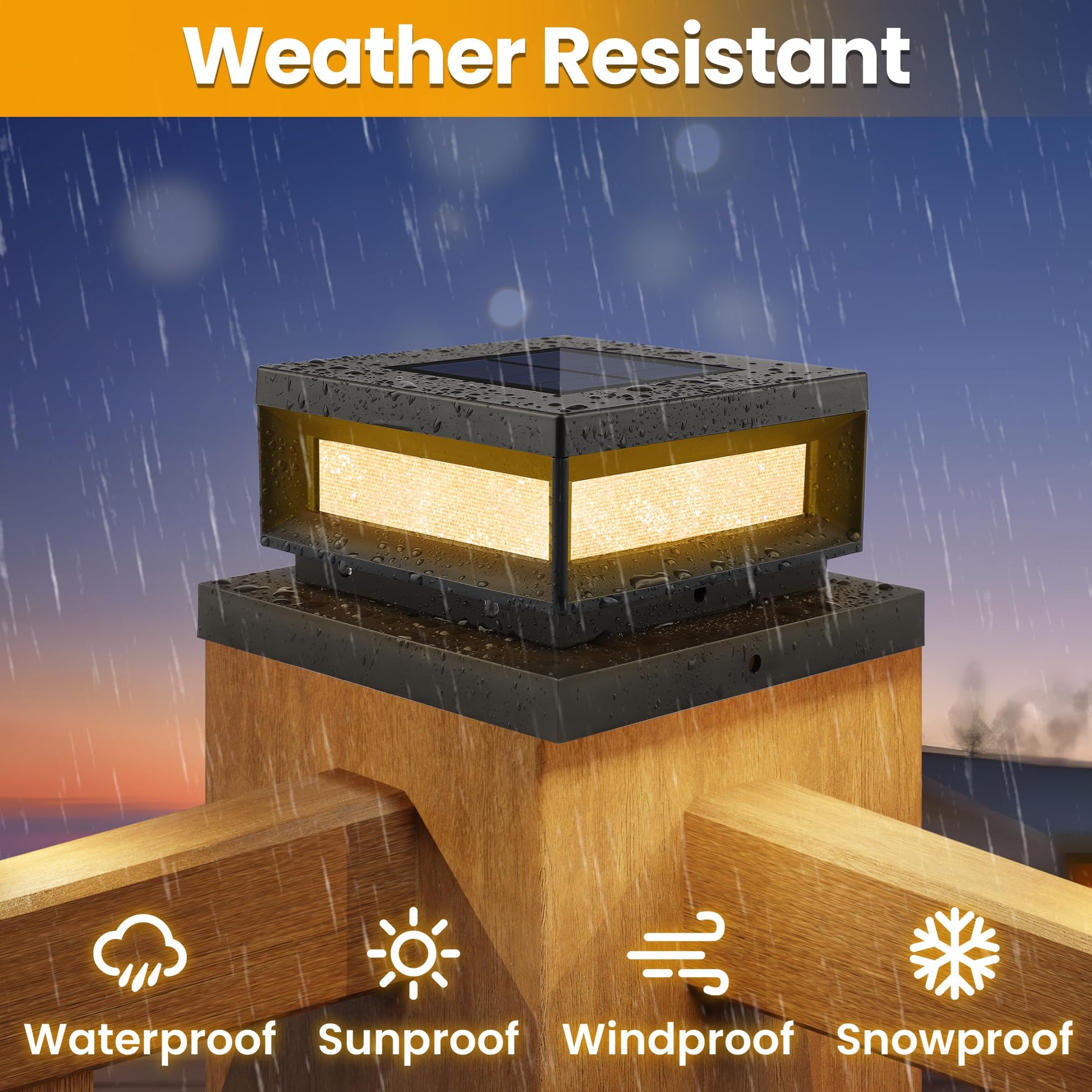 - Weather resistant: Our fence post solar lights have been enhanced with IP65 waterproof material, ensuring durability in high temperatures, heavy rain, snowstorms, and other outdoor conditions. These solar post cap lights shield your post from rain and sun exposure, helping to prevent premature rotting