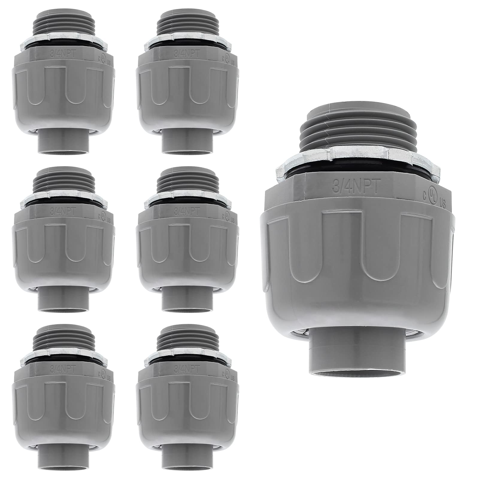 Moicstiy 6Pcs 3/4 Inch NPT Liquid Tight Connector Nonmetallic Straight Electrical Conduit Connector Fitting, UL Listed PVC Flexible Conduit Fittings