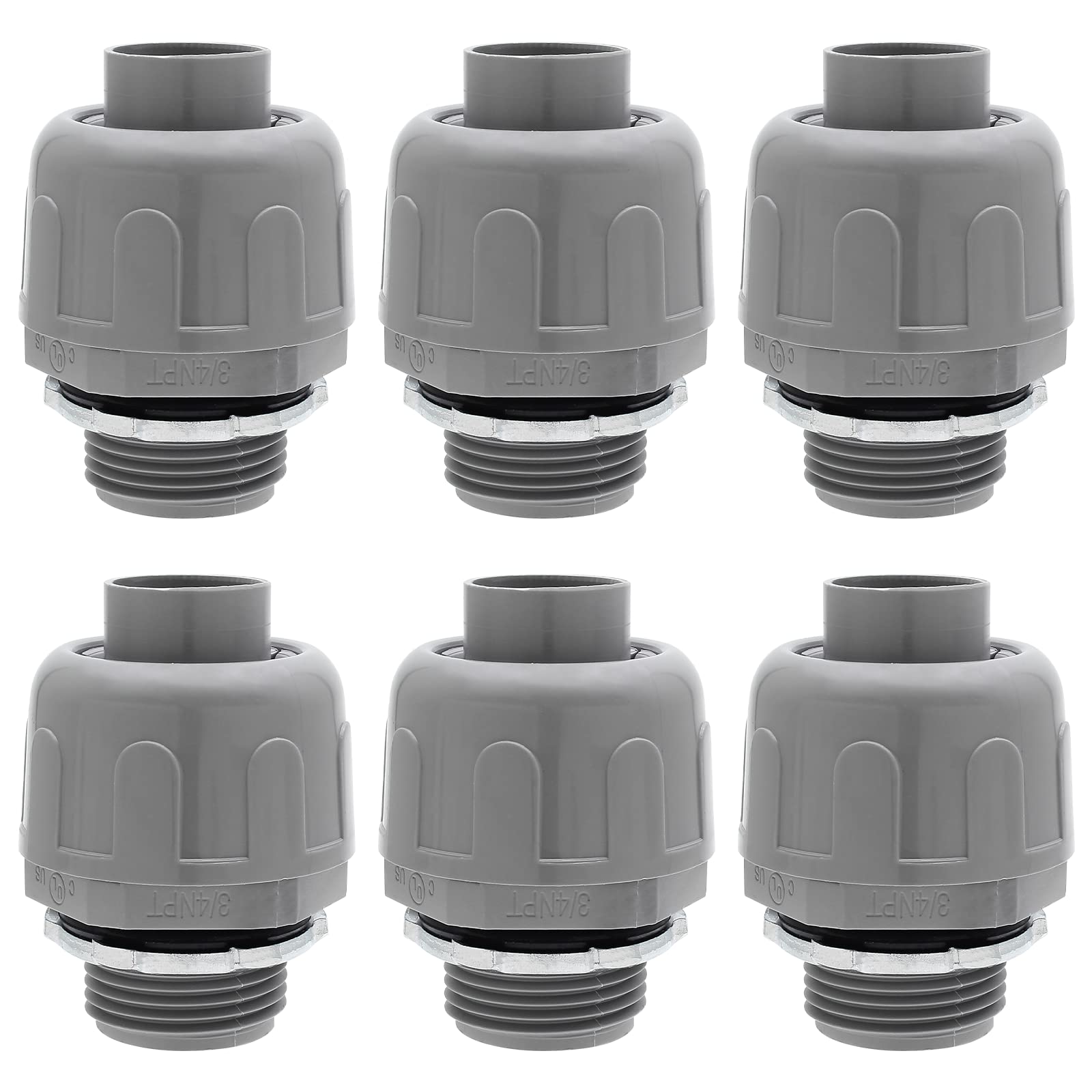 6Pcs x 3/4 Inch Straight Liquid Tight Connectors