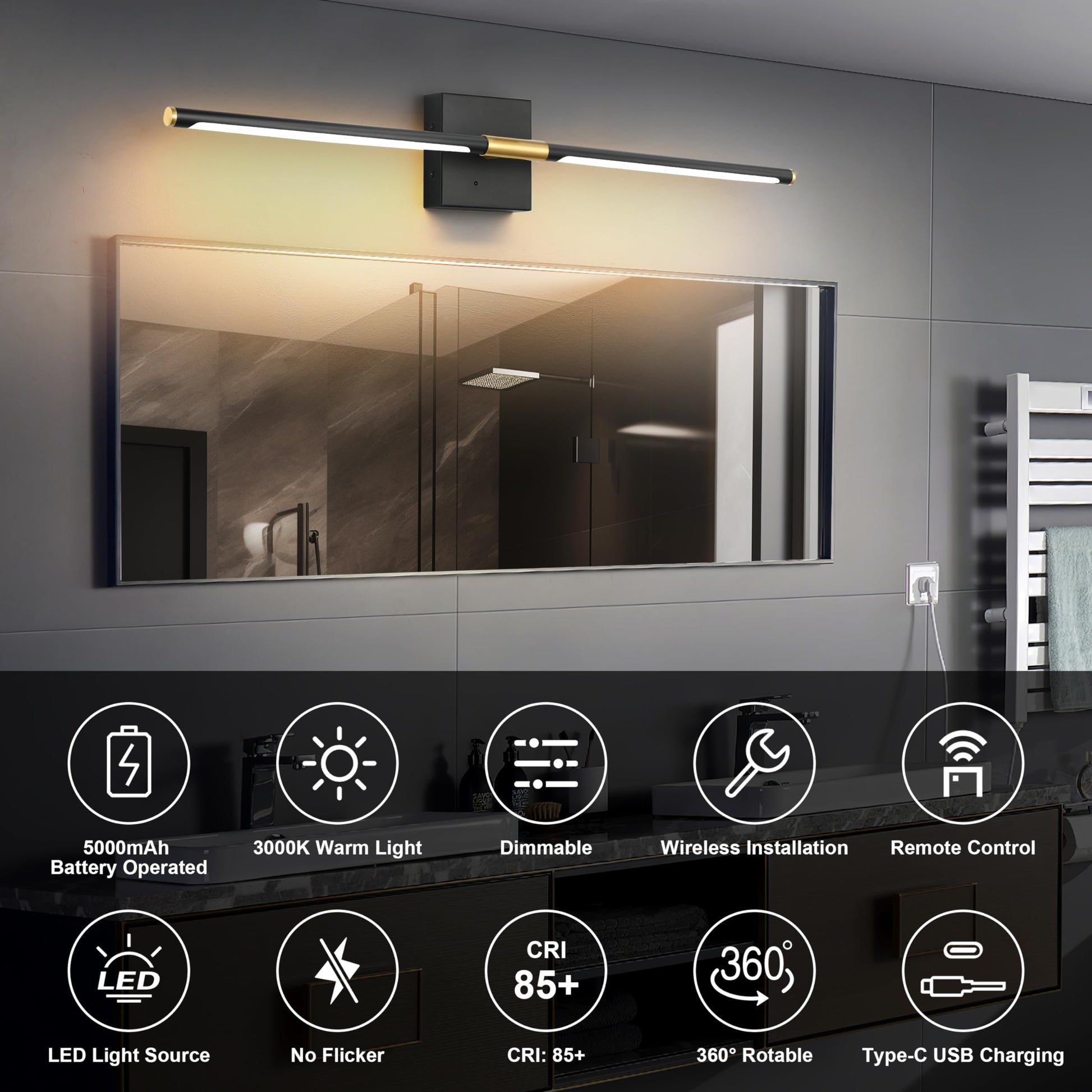 - 【Wide Application】Available in 24-inch and 30-inch sizes, this wireless battery wall sconce is ideal for use as a bathroom light fixture, vanity light, or picture light. The wall light is can also be used in living rooms, bedrooms, hallways, dens, staircases, and for picture displays, making it perfect for home décor!