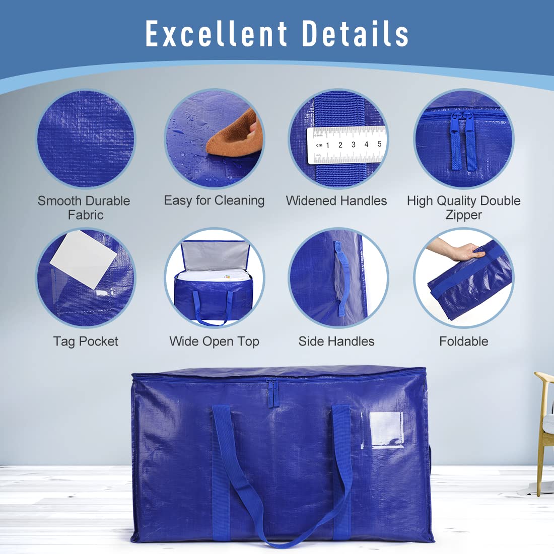 Moving Bags Heavy Duty Extra Large Storage Tote for Space Saving, Traveling Organizer, with Zippers & Strong Carrying Handles Alternative to Moving Boxes, Packing Supplies (Set of 6)