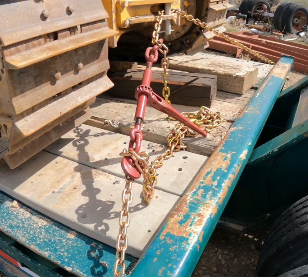 - 3/8" Grade 70 transport Chain - w/ grab hooks on each end. Working Load Limit: 6,600 lbs. Capacity: 26,400 lbs.
