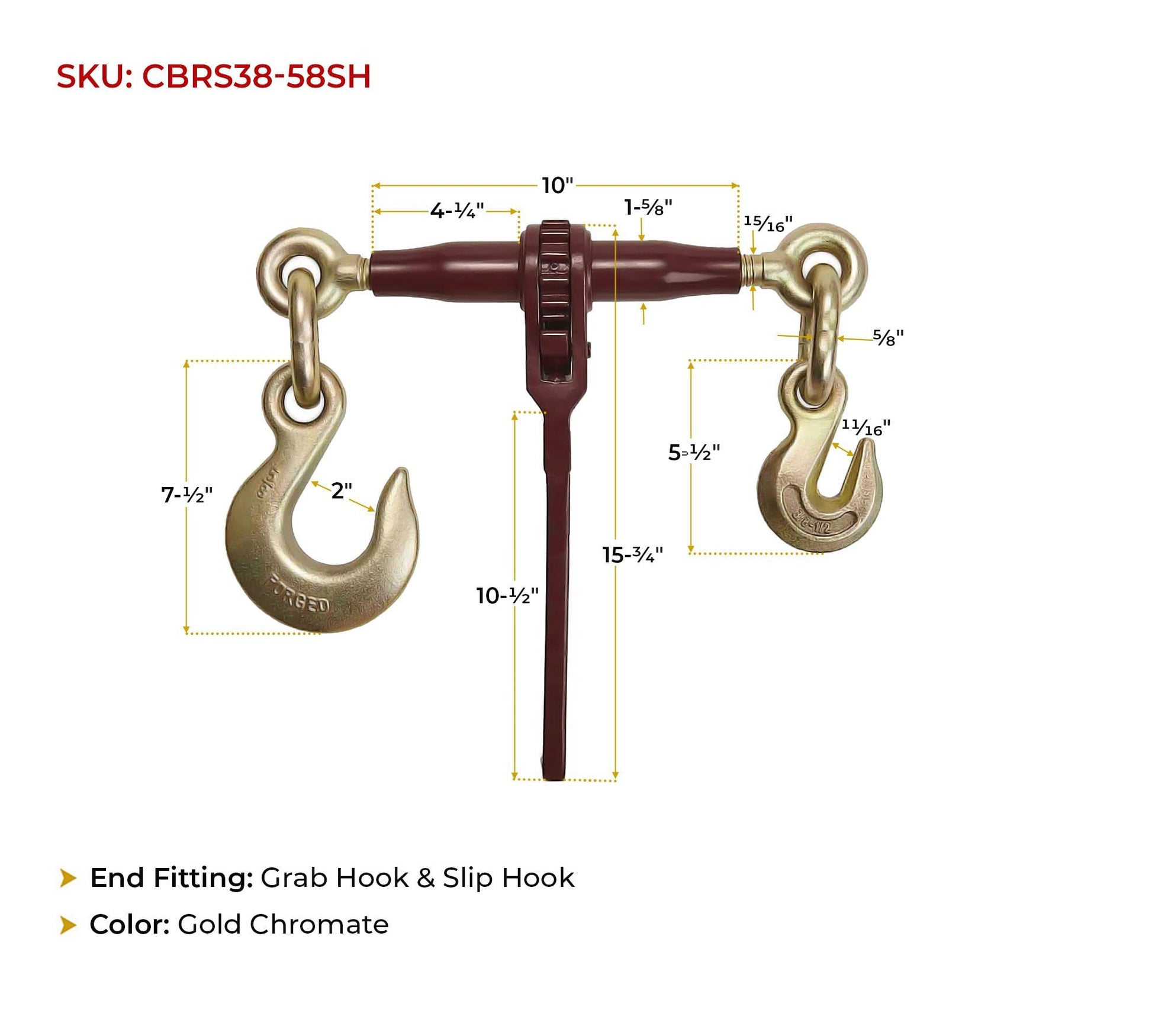 - End Fittings: 3/8"-1/2" Grab Hook & 5/8" Slip Hook