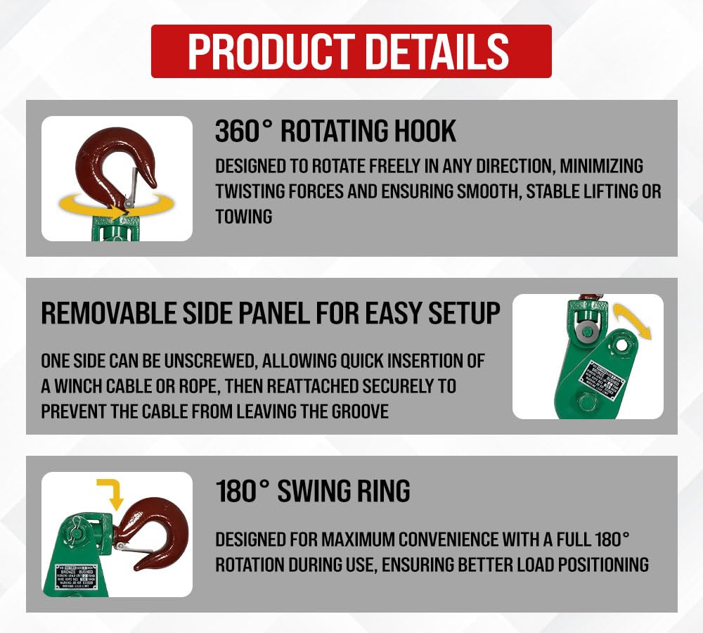 Mytee Products Snatch Block with Hook WLL 2 Ton 3" Sheave 3/8" Inch Wire Rope Wrecker Roll Back Recovery
