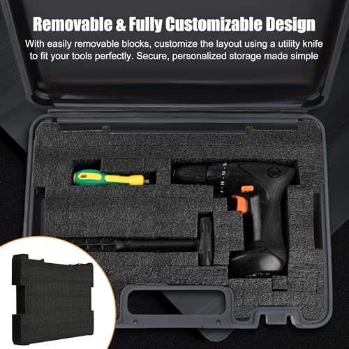 - Customizable Layout: Includes 2 thick + 2 thin removable foam blocks (16.77¡±L x 11.7¡±W x 2.73¡±H) that can be easily cut with a utility knife to create a personalized spot for every tool, from drills to wrenches