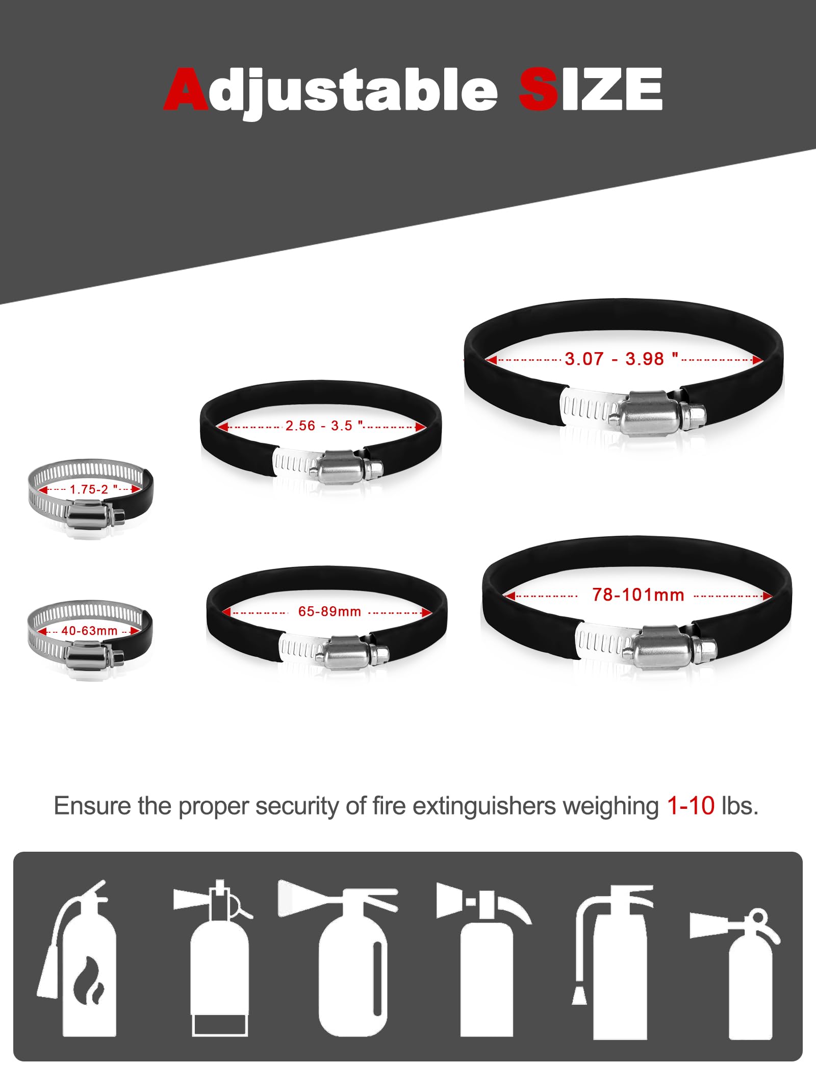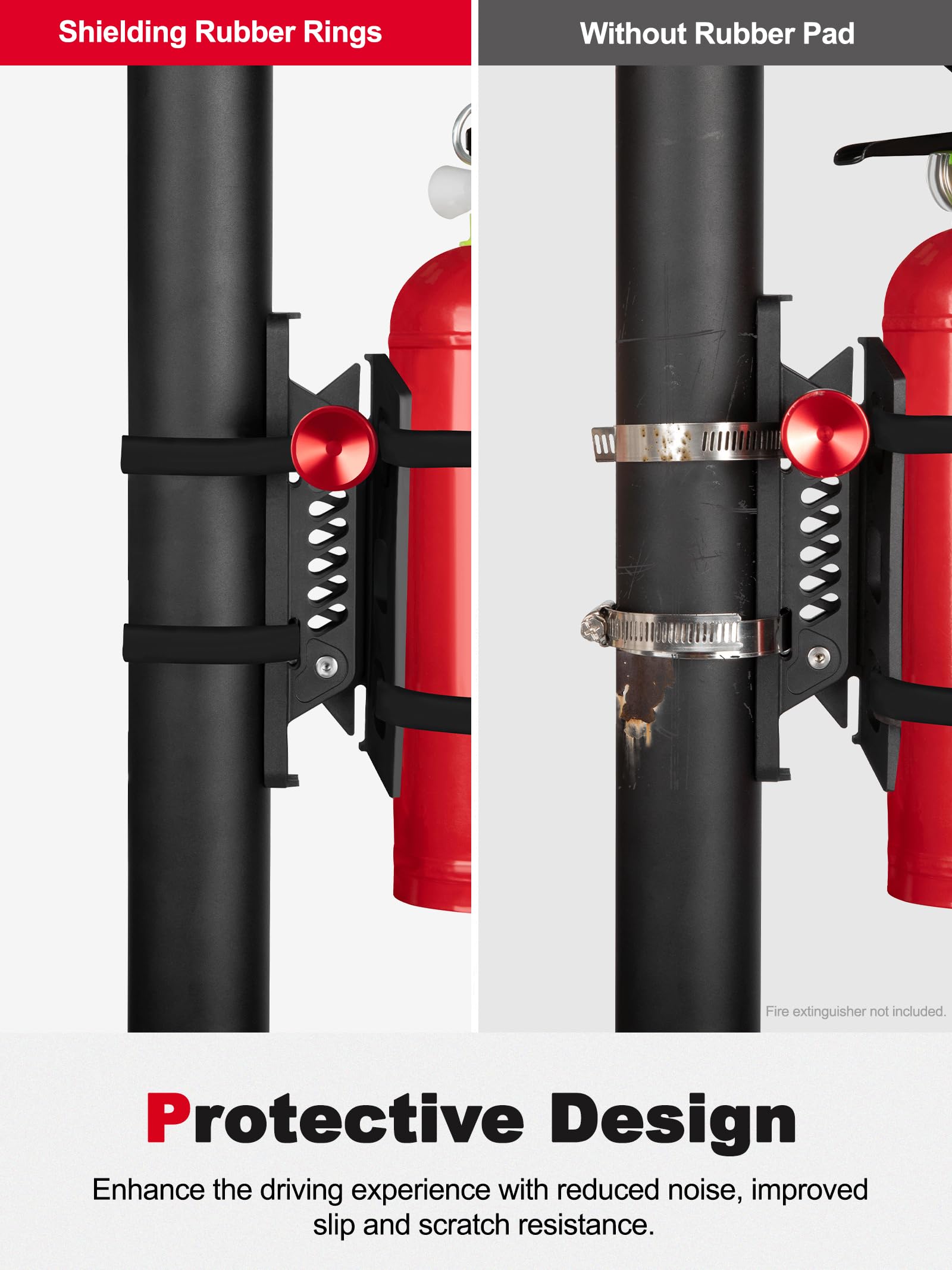 - 【Package Contains】: The package contains four adjustable rings( 65~89mm for the roll bar and 78-101mm for the fire extinguisher) and one detachable fire extinguisher mounting bracket
