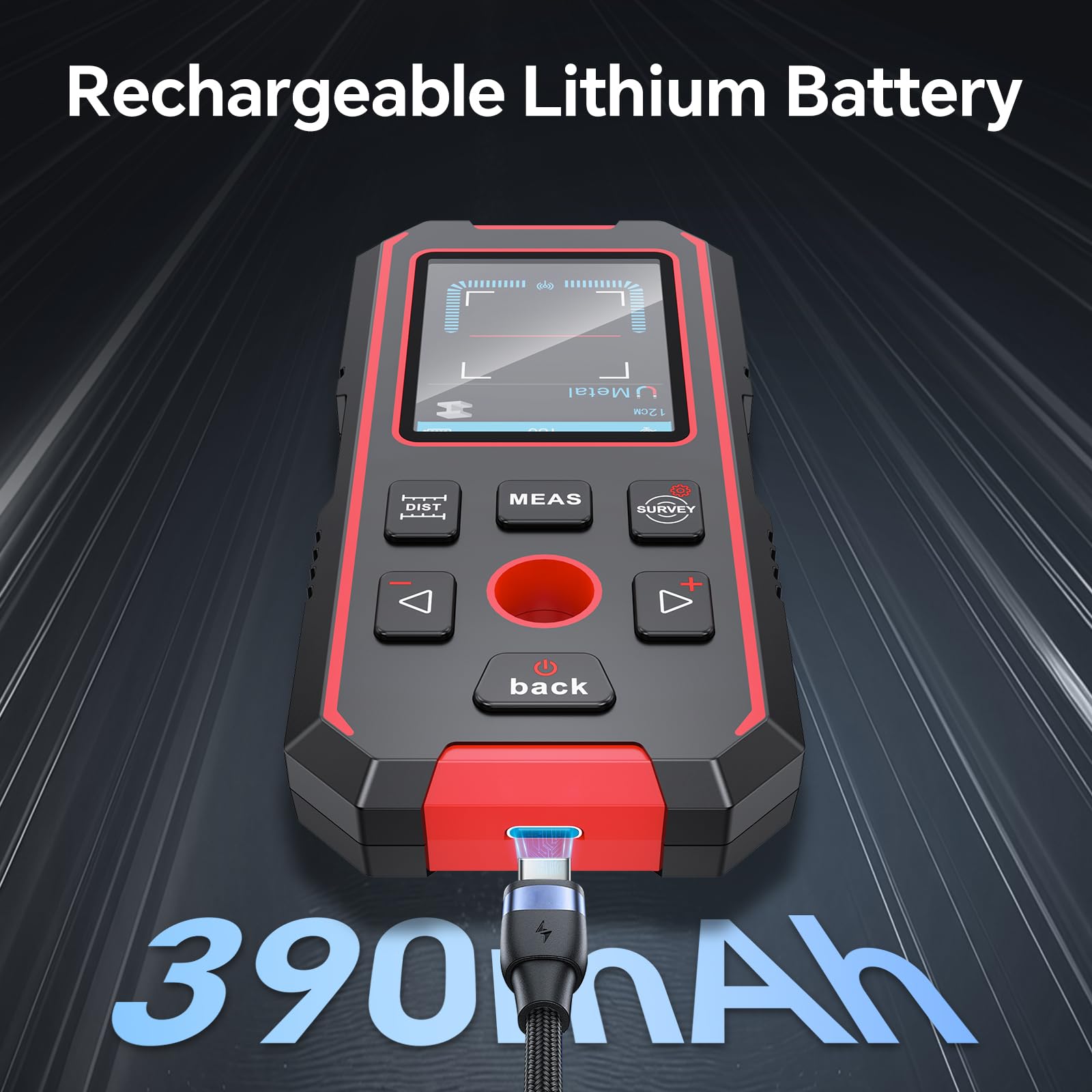 - Type-C Rechargeable & LCD Display: The magnetic stud finder is equipped with a 2.4-inch LCD backlit display and a 390mAh large-capacity battery, and the backlight function allows you to read clearly in dark conditions. No need to worry about running out of power when working continuously, the Type-C charging port allows for fast and convenient charging