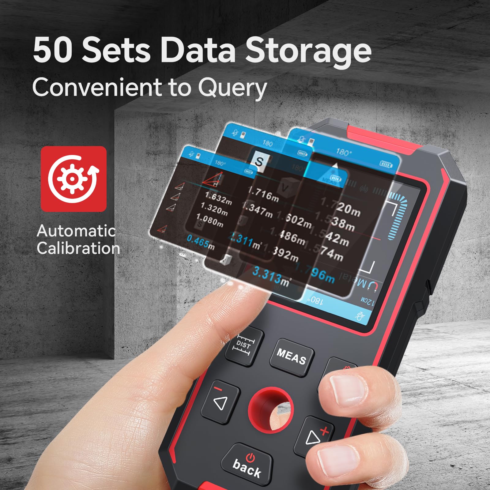 - Automatic calibration + Data Storage: Stud Finder Wall Scanner can store up to 50 sets of data that allows you to store the data you need to record during measurement work. This feature avoids spending time repeating measurements. The wall scanner has an automatic calibration function, so there is no need to worry about inaccurate product data