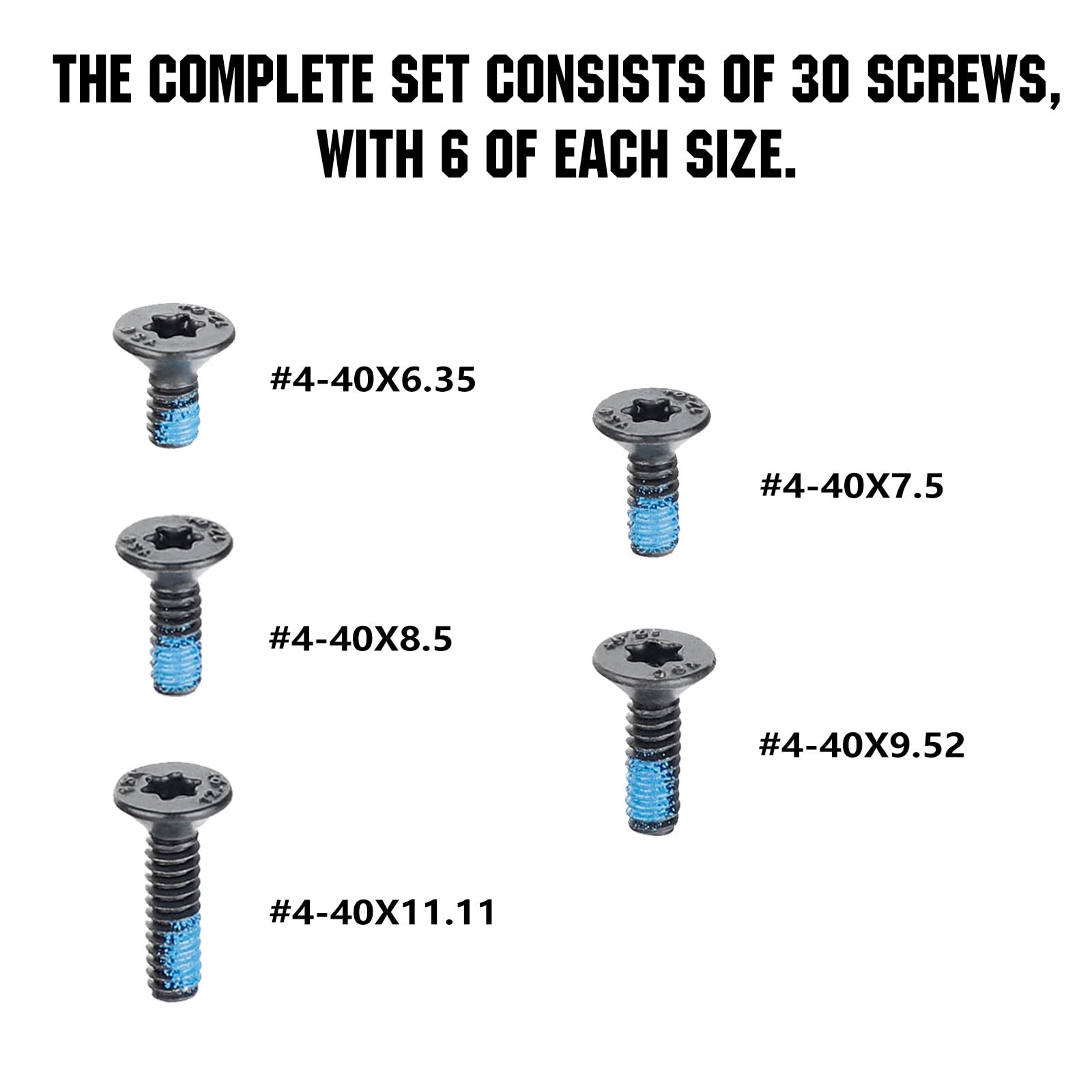 ohhunt Screws Set 30Pcs for Red Dot Sight Optics and Mount Includes #4-40 in 6.35mm/7.5mm/8.5mm/9.52mm/11.11mm Length 5 Sets of Screws 6 in Each Set
